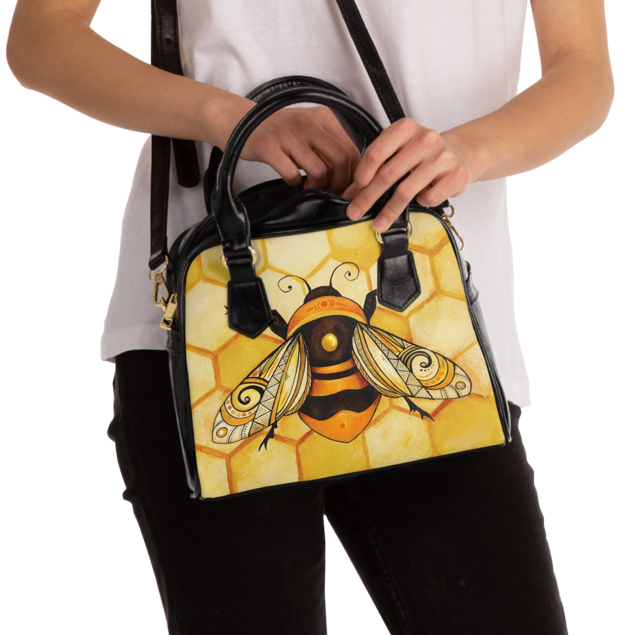 Bring a warm, whimsical buzz to everyday outings with this shoulder handbag. The double-sided print showcases a honeycomb backdrop and a stylized bee motif in rich golden and amber tones that pop against the black PU leather trim and handles. Thoughtful interior organization—one zip pocket and two open pockets—keeps small essentials tidy, while a removable, adjustable shoulder strap lets you switch between handheld elegance and crossbody ease. The high-grade PU leather and polyester lining deliver a sleek look that’s travel-ready and easy to care for. Carry a little pocketful of sunshine that complements floral dresses, denim jackets, and market runs alike.