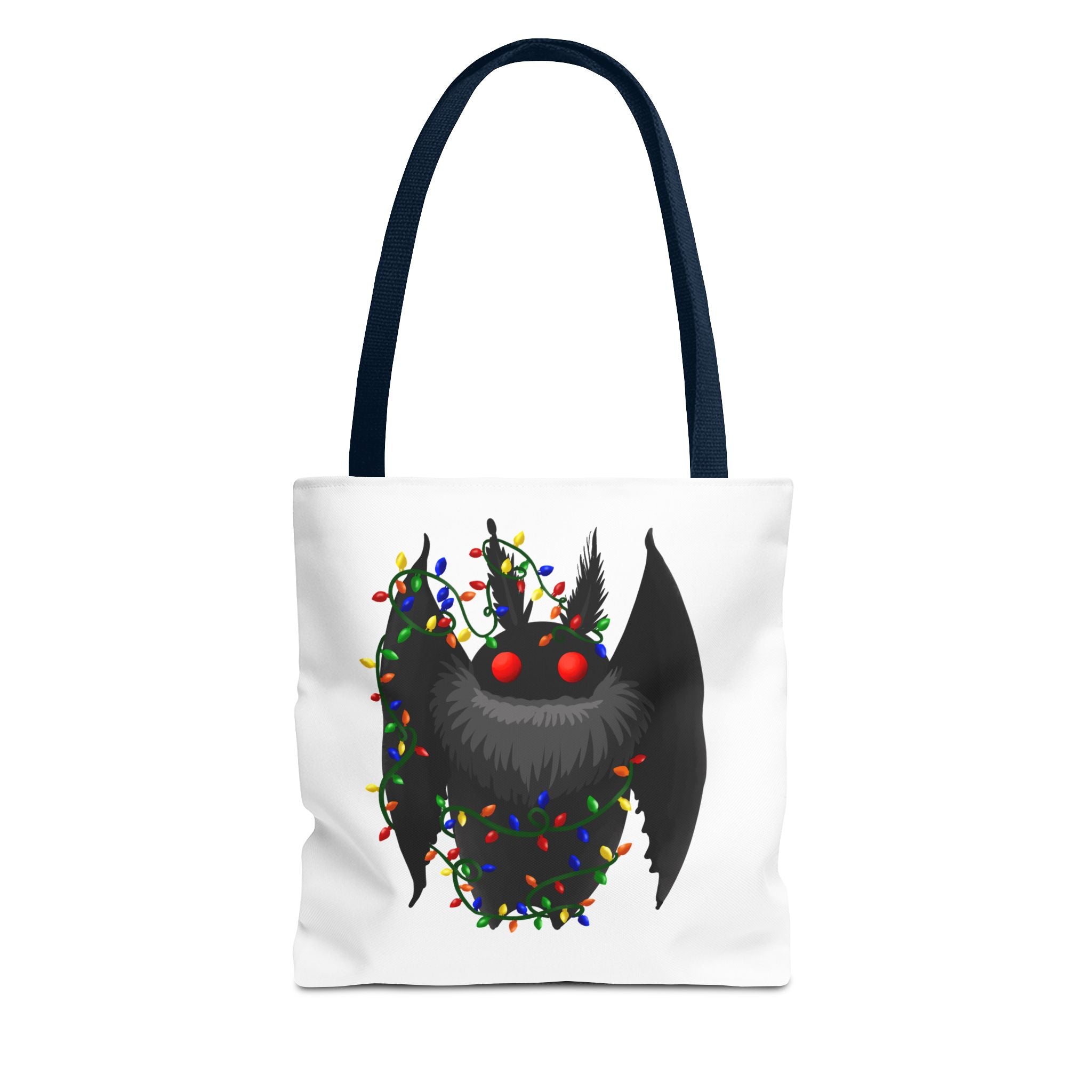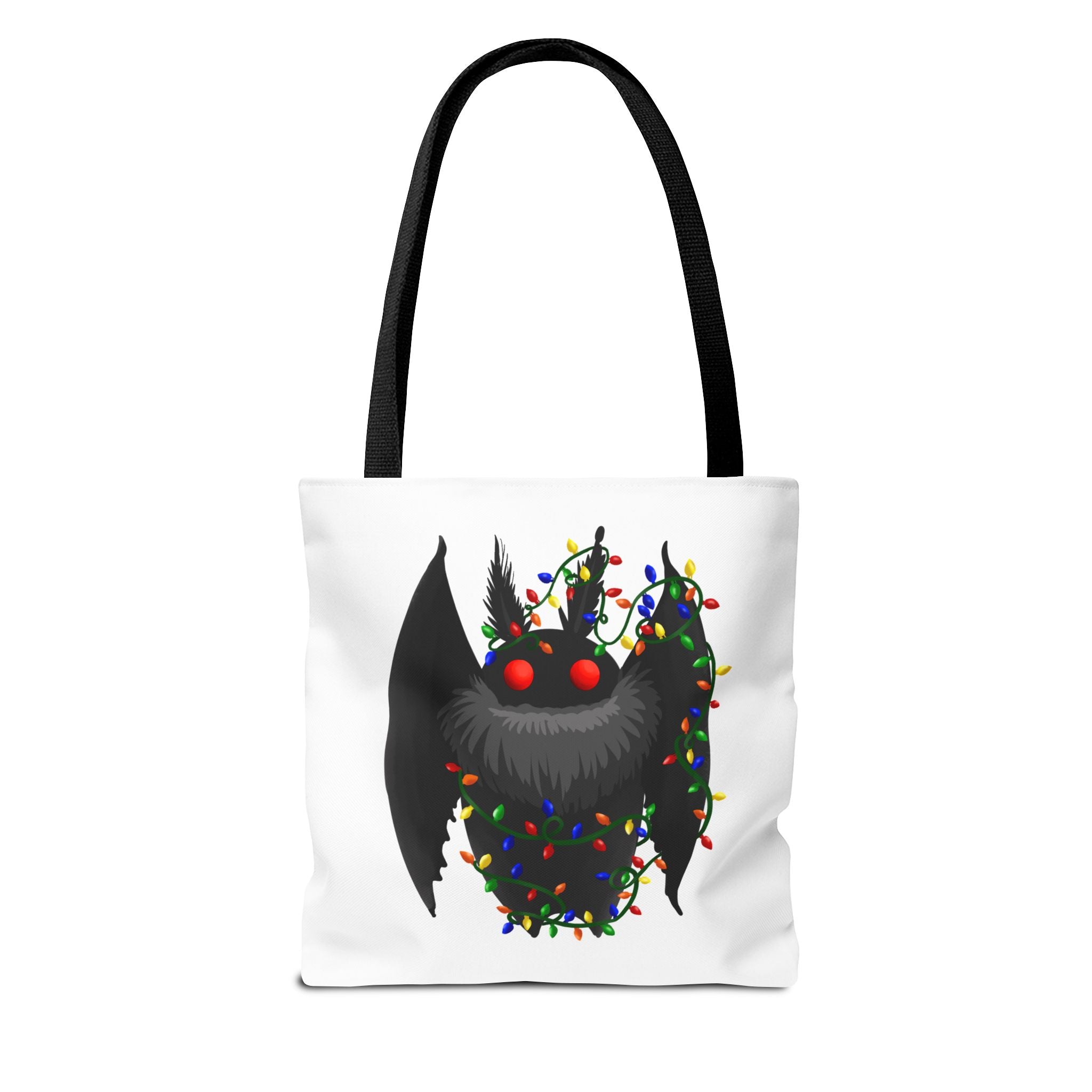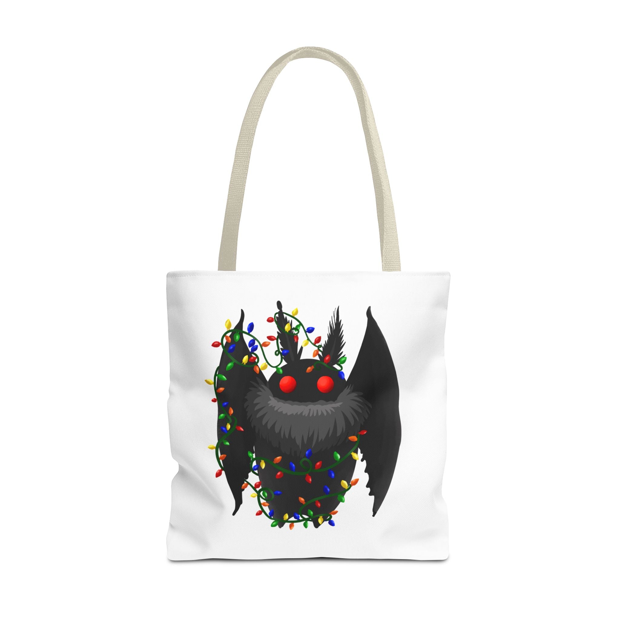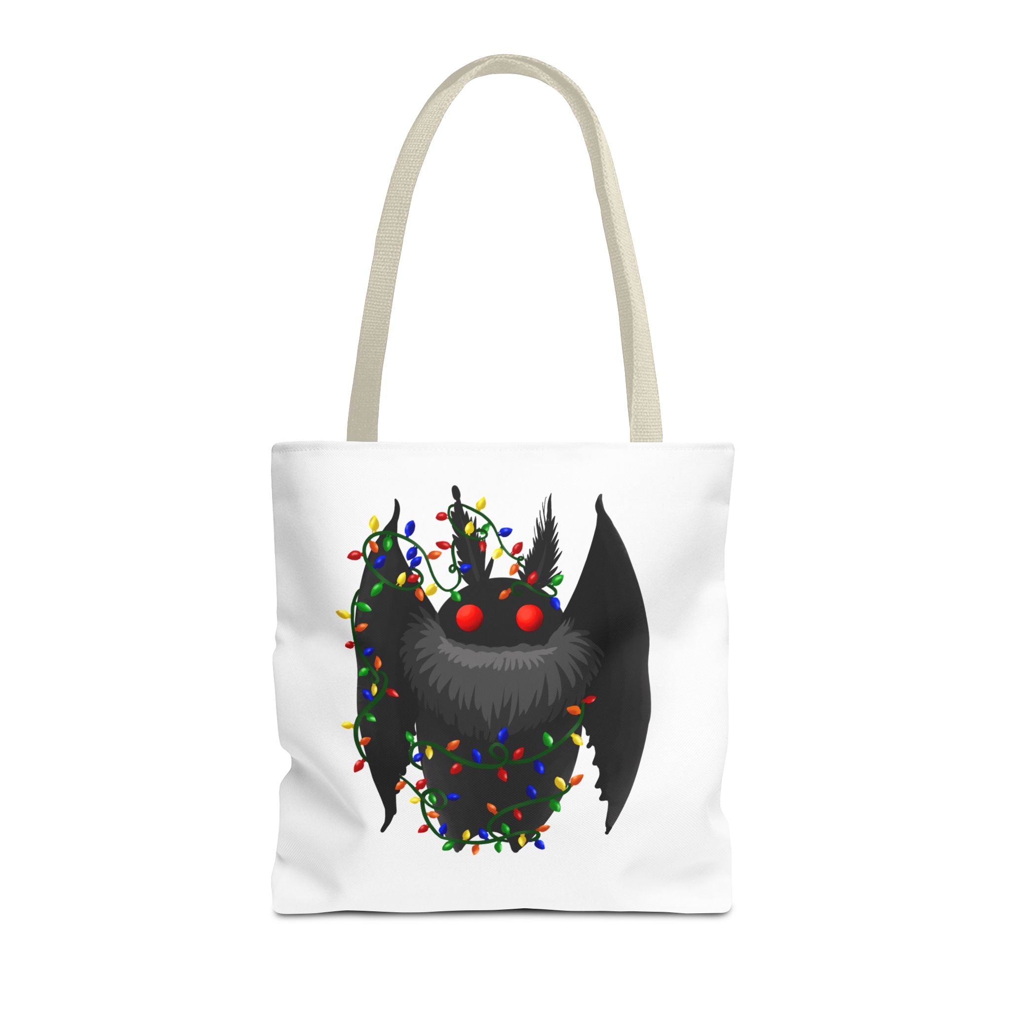 This roomy, durable tote carries a touch of whimsical darkness into everyday life. A plush, shadowy bat—wrapped in tangled, colorful holiday lights with glowing red eyes—sits centered on a crisp white canvas, turning a simple errand into a small, mischievous moment. The bag’s medium-weight polyester holds its shape and resists dampness, while boxed corners expand the interior for groceries, sketchbooks, or a cozy blanket. Reinforced handle stitching and a neat laminate interior mean it stands up to daily use without losing its charm. Swap handle colors to match your mood and let this tote show up at winter markets, late-night parties, or on cold-weather walks when you want something equal parts eerie and festive.