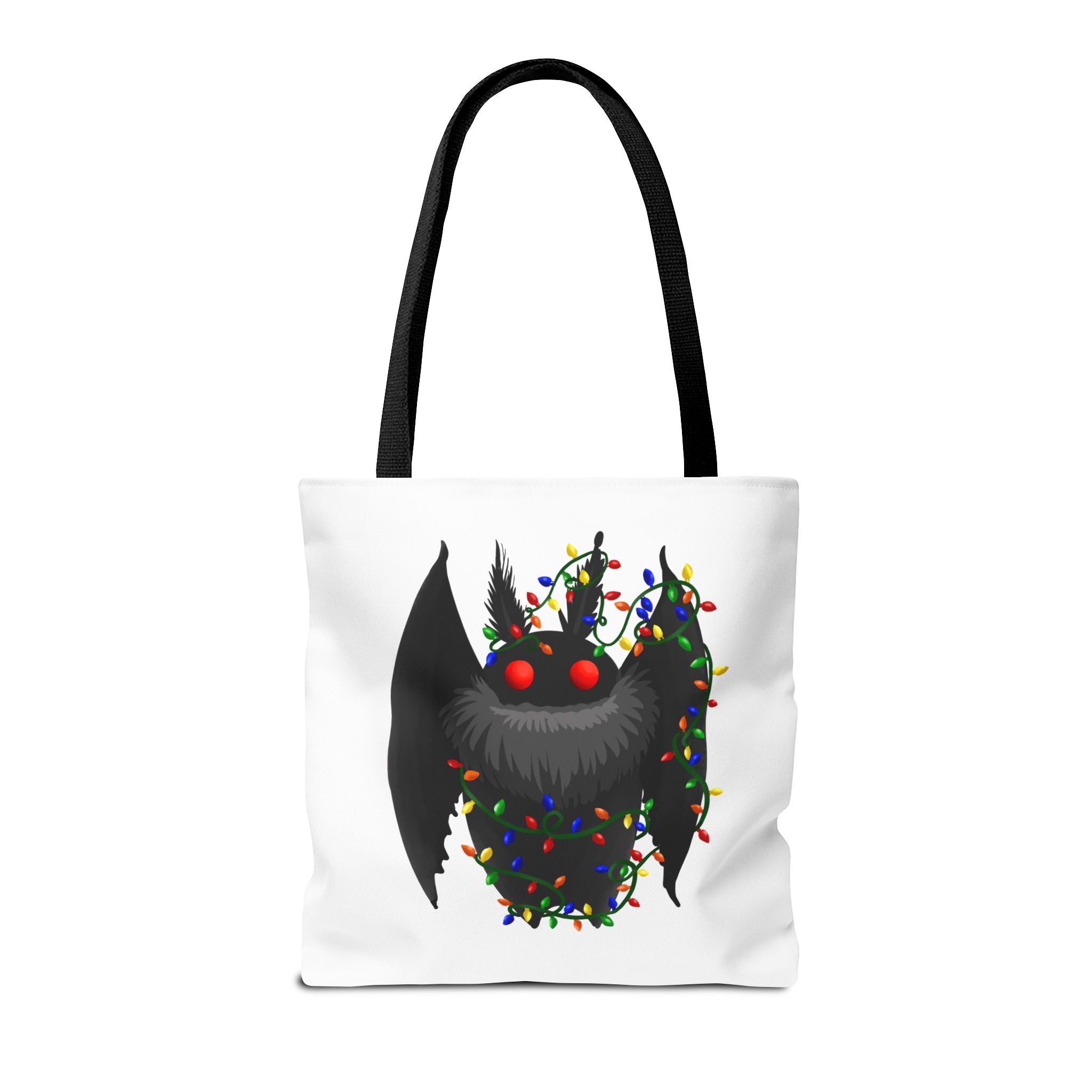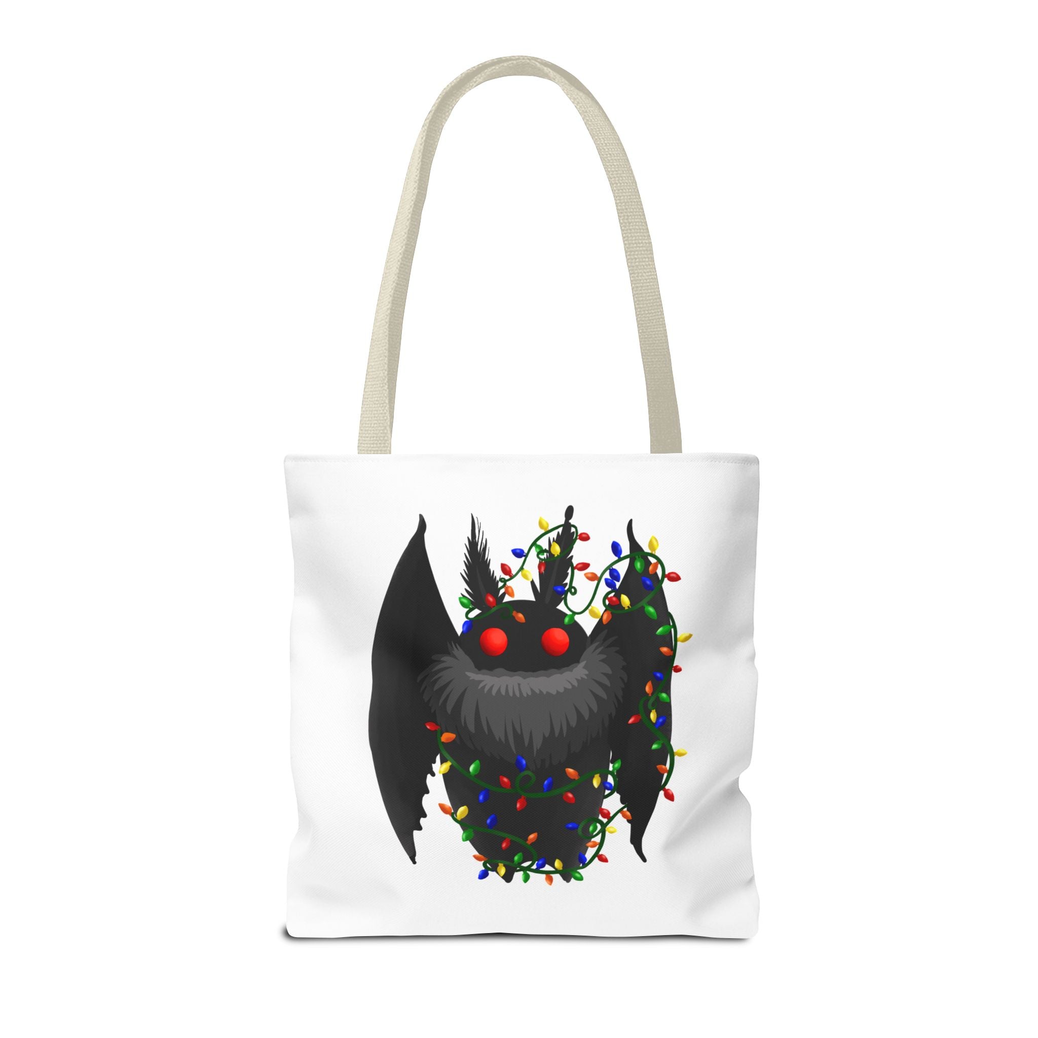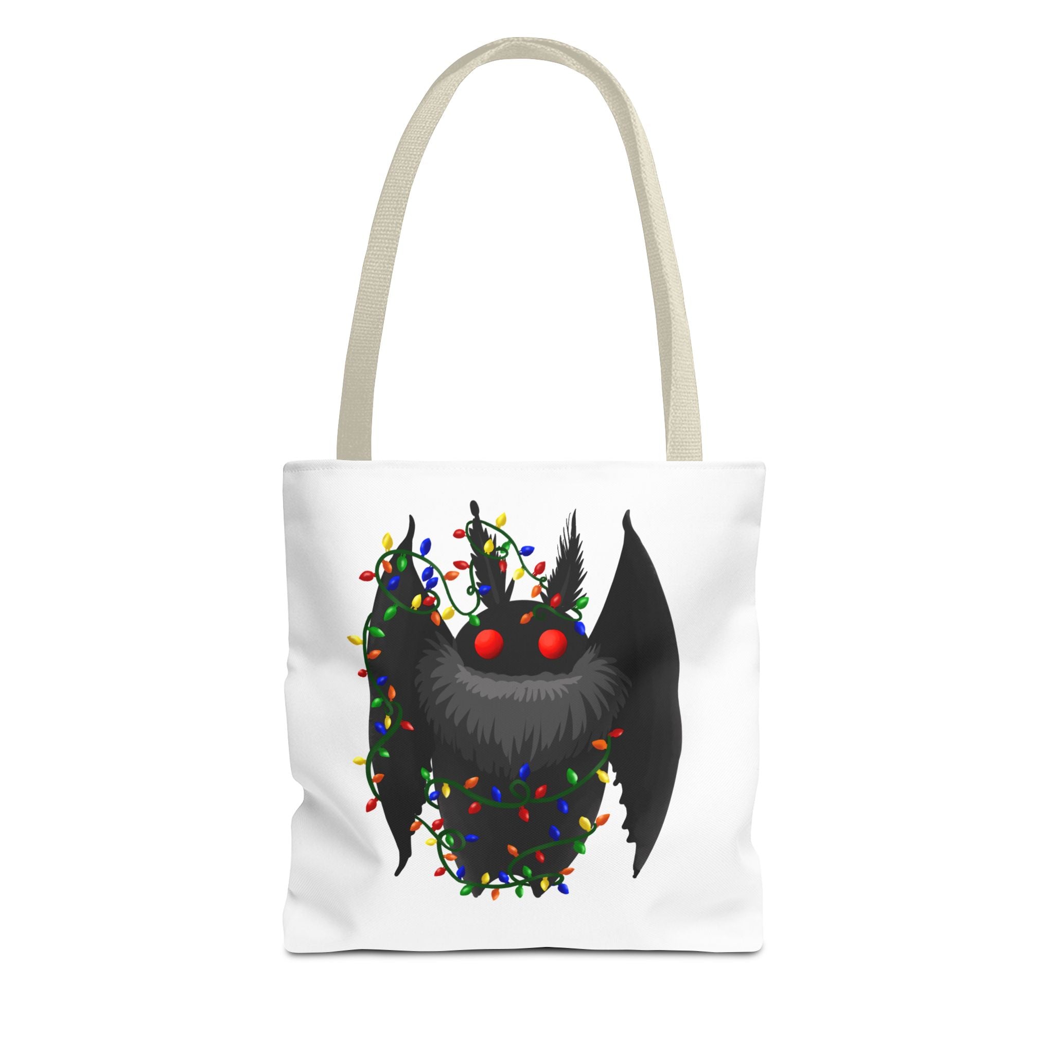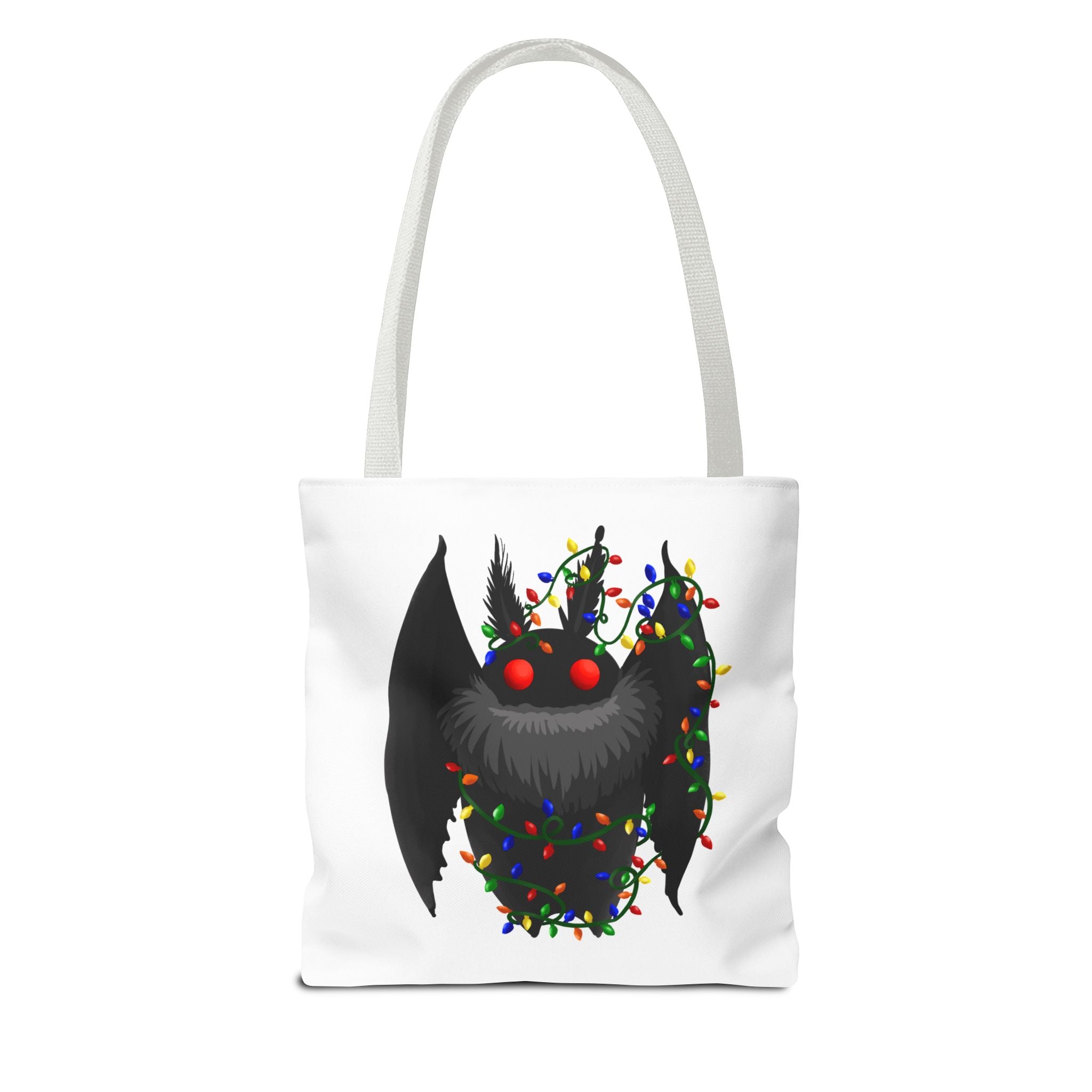 This roomy, durable tote carries a touch of whimsical darkness into everyday life. A plush, shadowy bat—wrapped in tangled, colorful holiday lights with glowing red eyes—sits centered on a crisp white canvas, turning a simple errand into a small, mischievous moment. The bag’s medium-weight polyester holds its shape and resists dampness, while boxed corners expand the interior for groceries, sketchbooks, or a cozy blanket. Reinforced handle stitching and a neat laminate interior mean it stands up to daily use without losing its charm. Swap handle colors to match your mood and let this tote show up at winter markets, late-night parties, or on cold-weather walks when you want something equal parts eerie and festive.