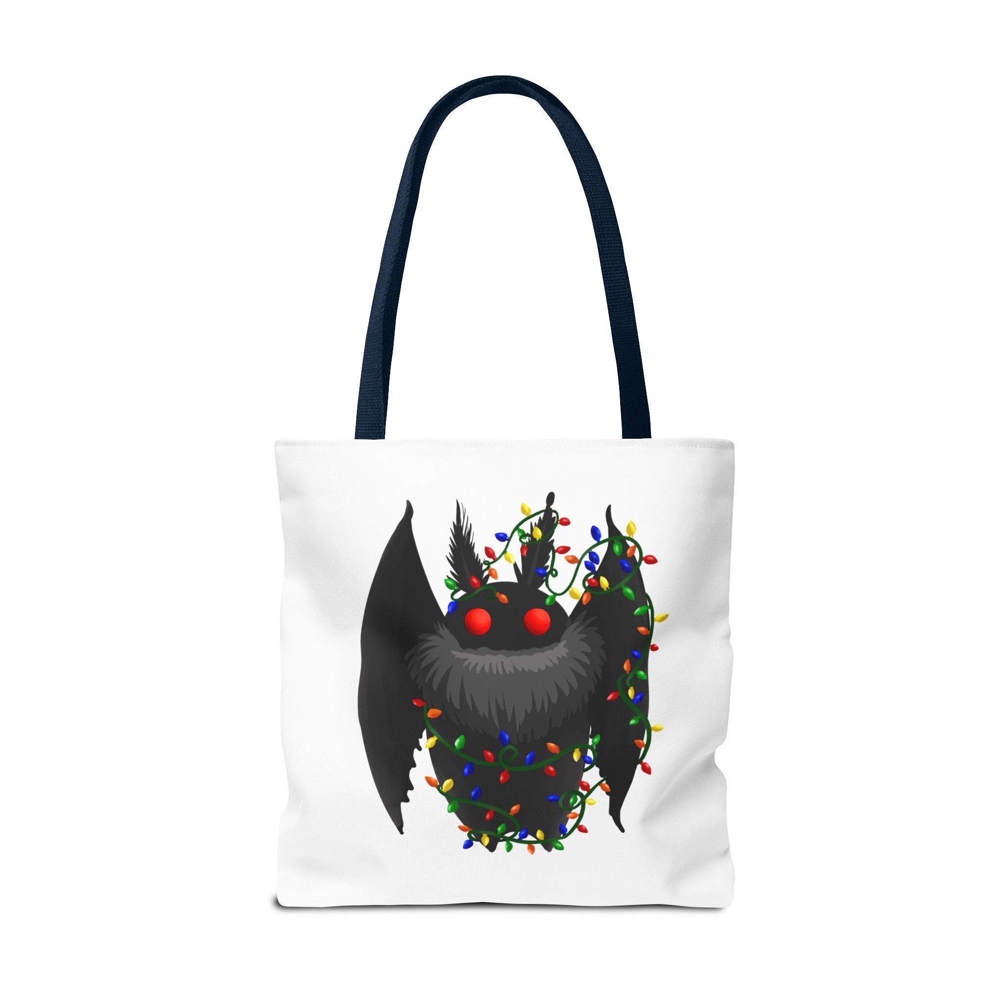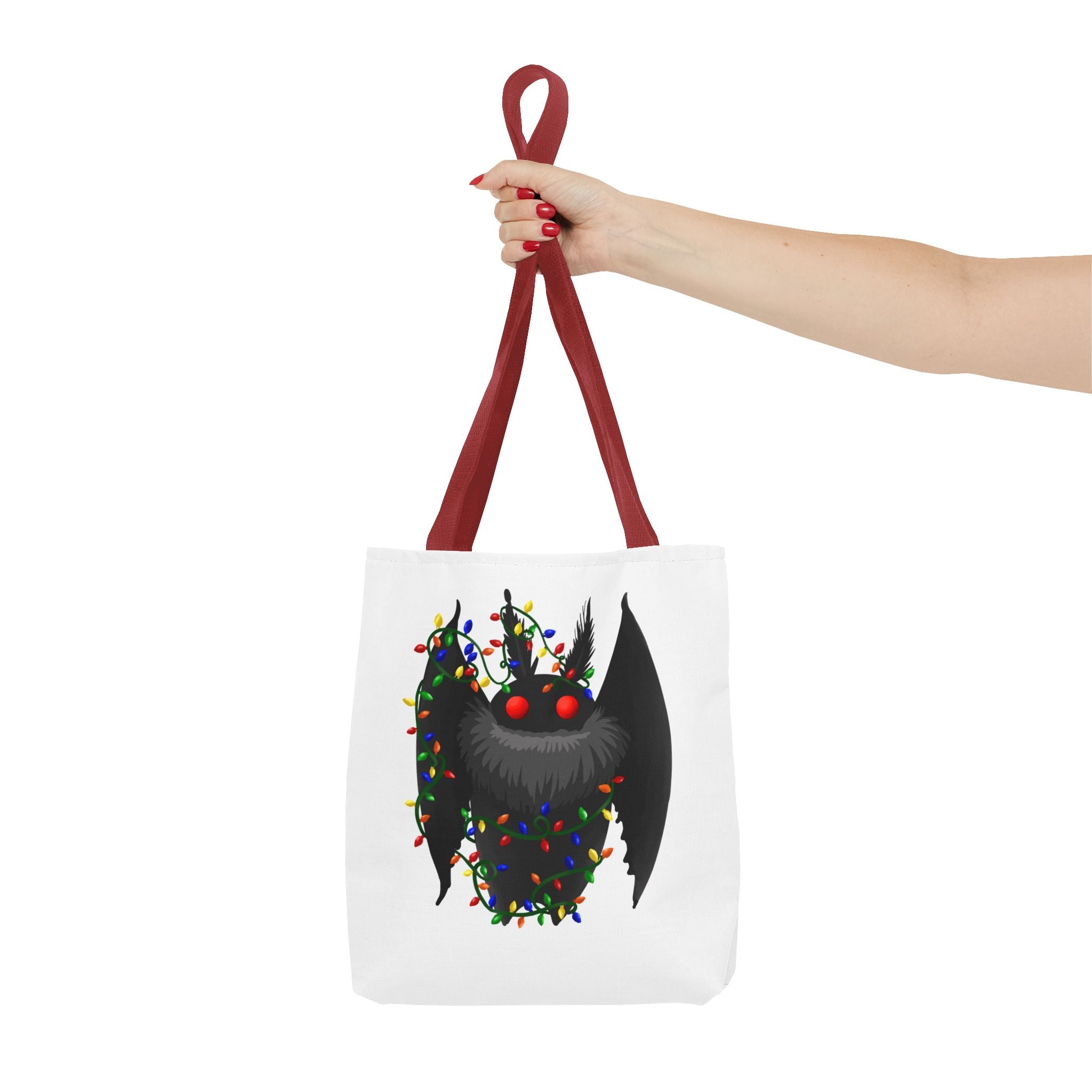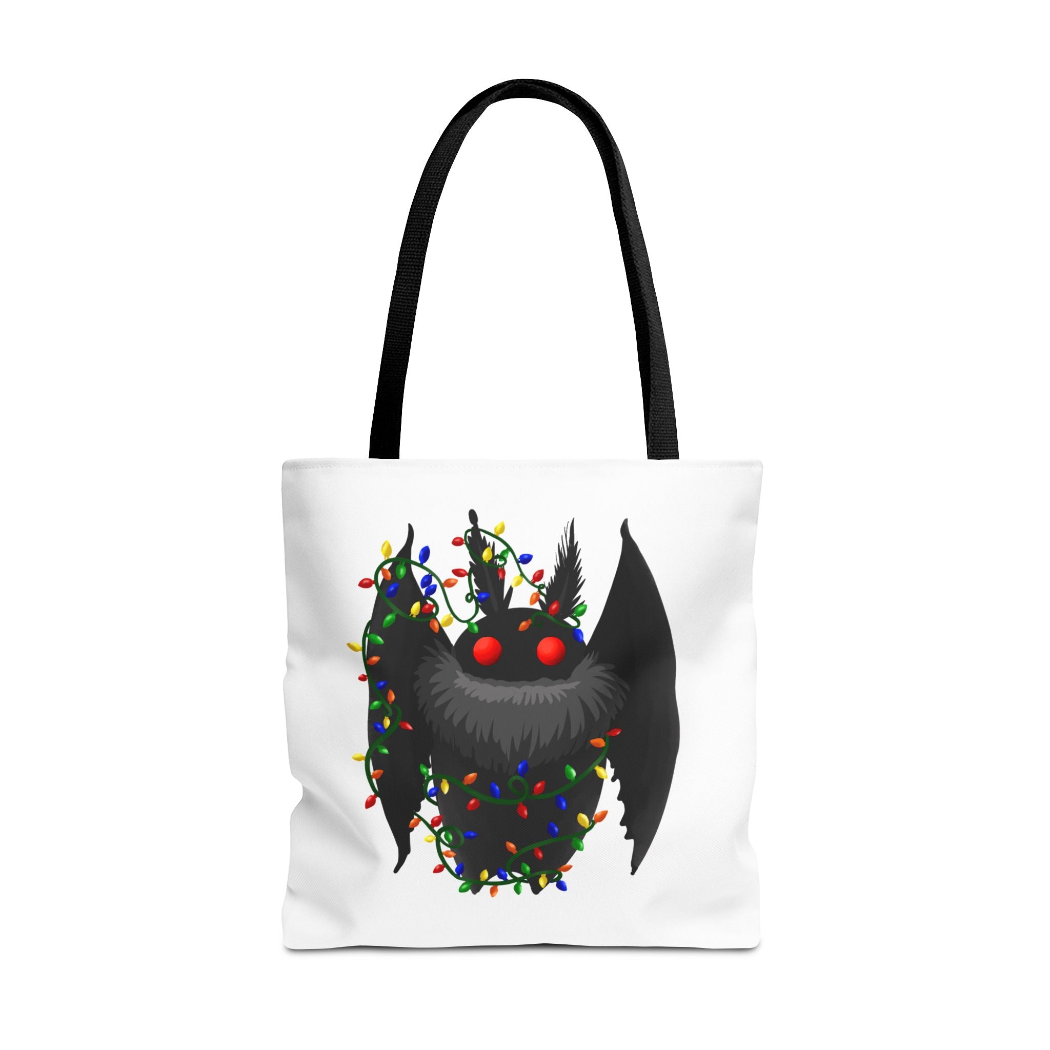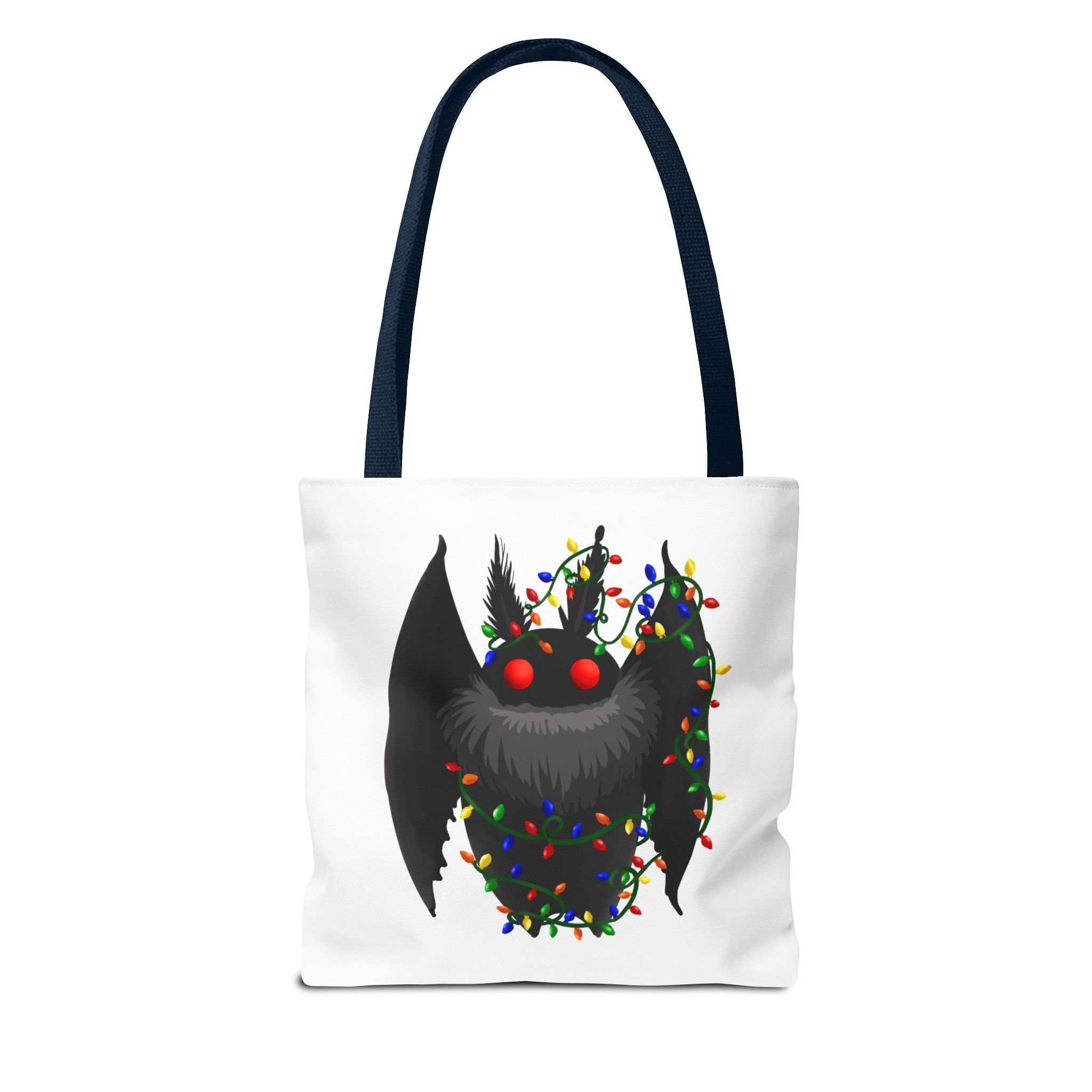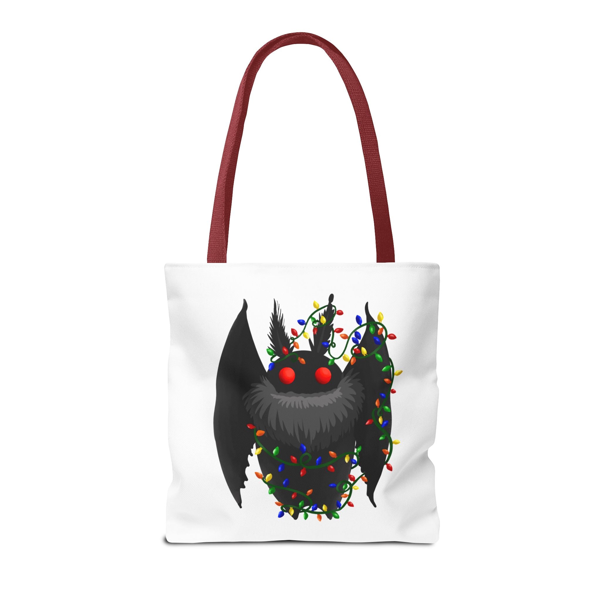 This roomy, durable tote carries a touch of whimsical darkness into everyday life. A plush, shadowy bat—wrapped in tangled, colorful holiday lights with glowing red eyes—sits centered on a crisp white canvas, turning a simple errand into a small, mischievous moment. The bag’s medium-weight polyester holds its shape and resists dampness, while boxed corners expand the interior for groceries, sketchbooks, or a cozy blanket. Reinforced handle stitching and a neat laminate interior mean it stands up to daily use without losing its charm. Swap handle colors to match your mood and let this tote show up at winter markets, late-night parties, or on cold-weather walks when you want something equal parts eerie and festive.