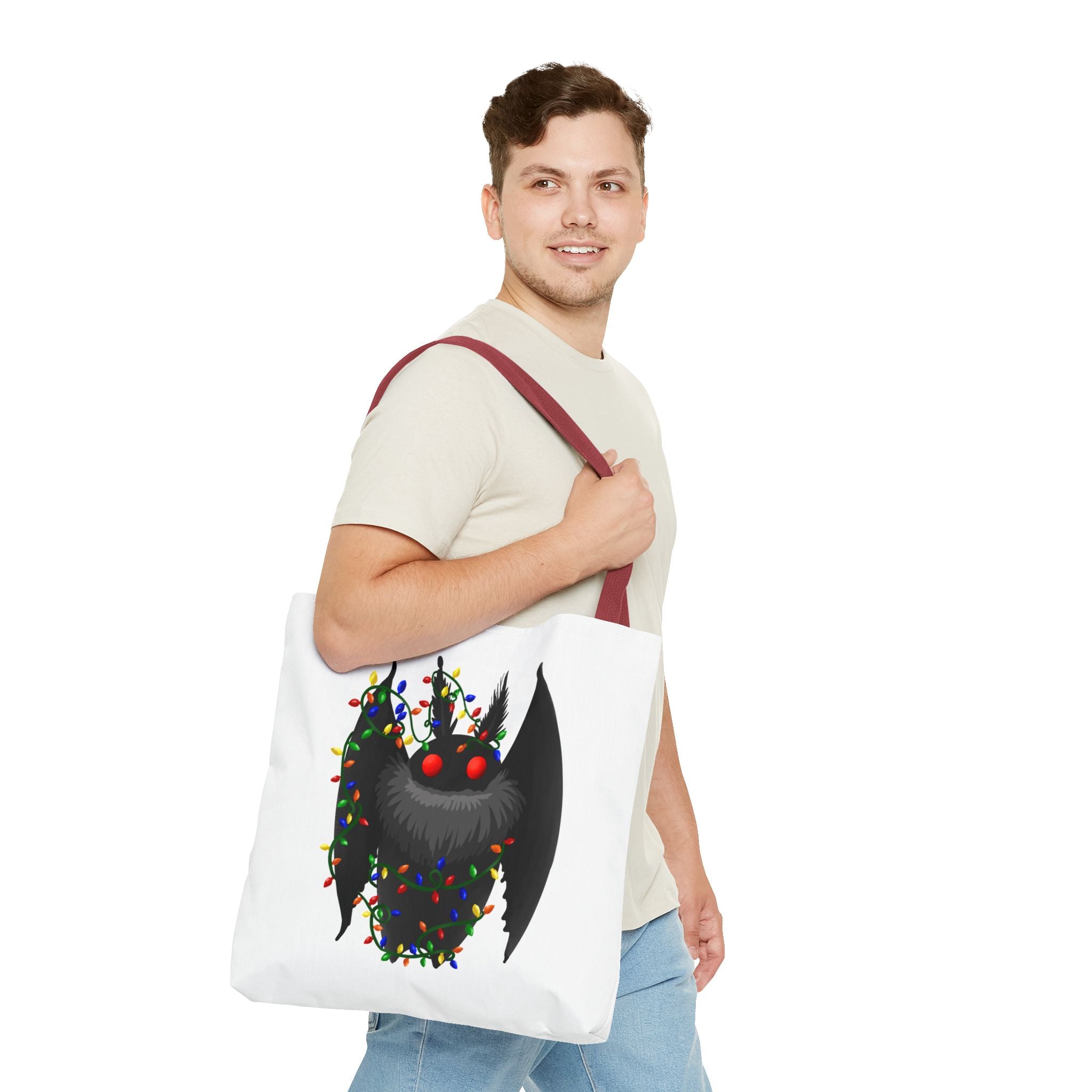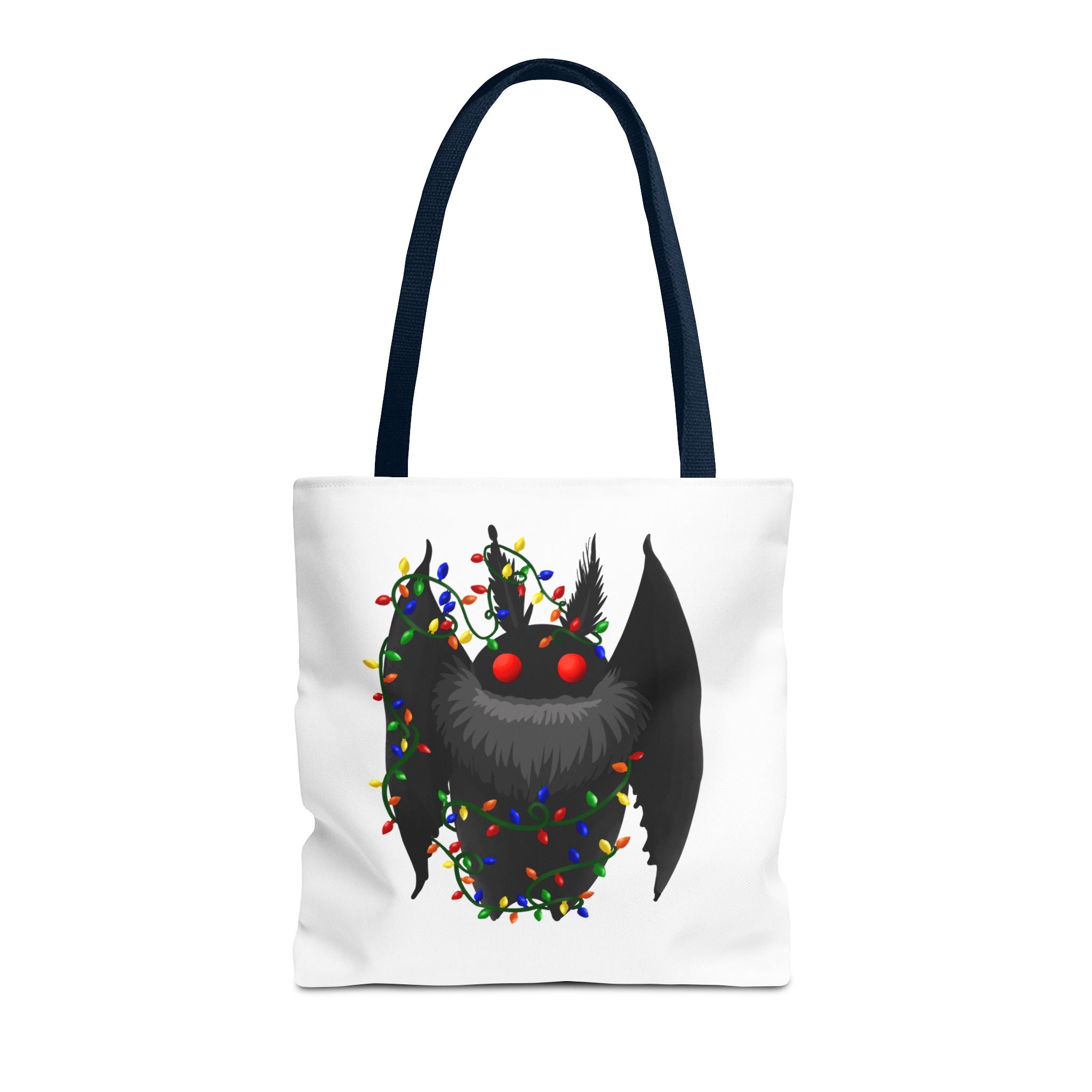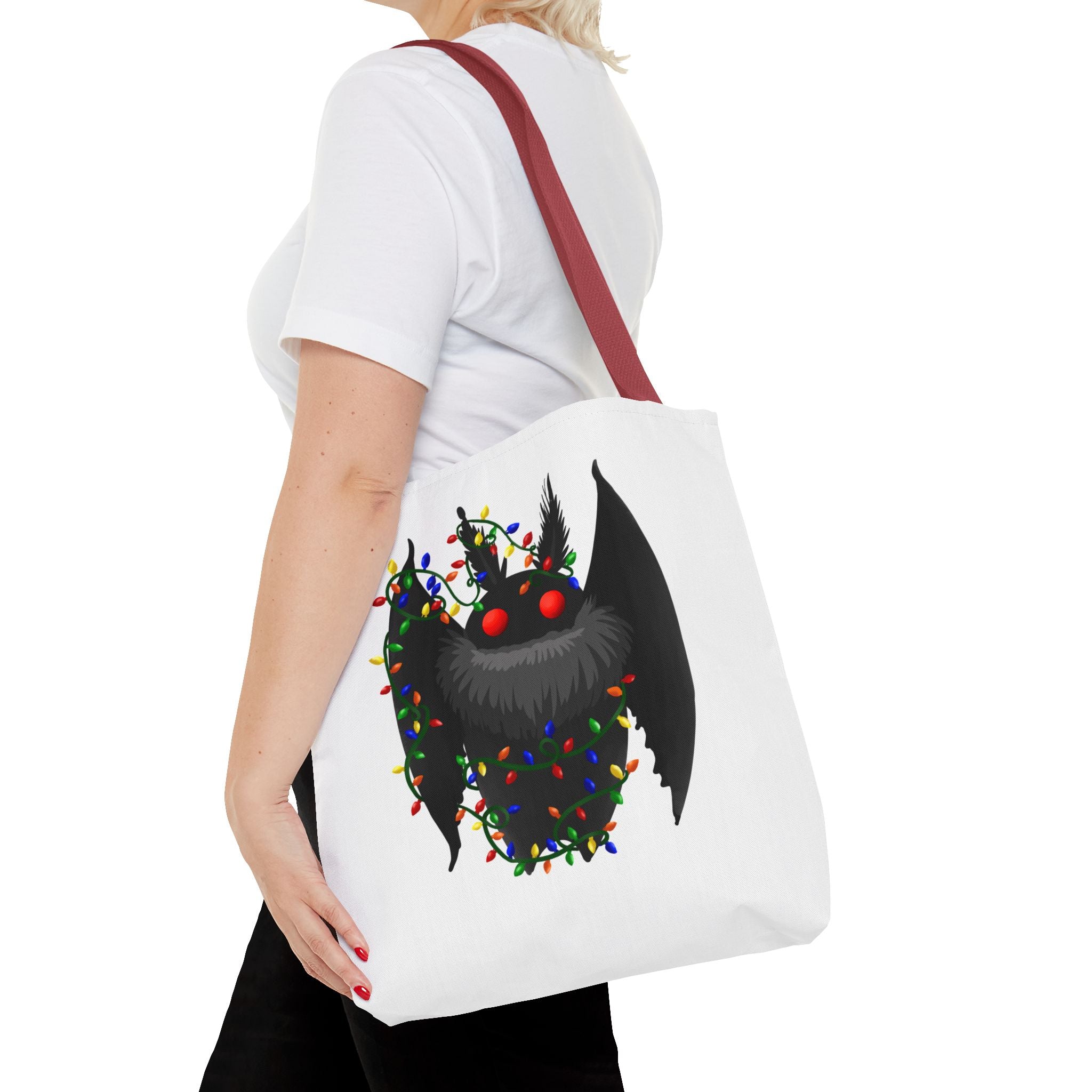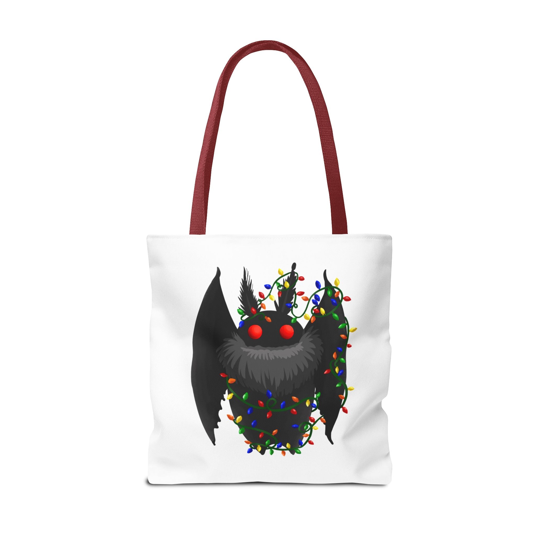 This roomy, durable tote carries a touch of whimsical darkness into everyday life. A plush, shadowy bat—wrapped in tangled, colorful holiday lights with glowing red eyes—sits centered on a crisp white canvas, turning a simple errand into a small, mischievous moment. The bag’s medium-weight polyester holds its shape and resists dampness, while boxed corners expand the interior for groceries, sketchbooks, or a cozy blanket. Reinforced handle stitching and a neat laminate interior mean it stands up to daily use without losing its charm. Swap handle colors to match your mood and let this tote show up at winter markets, late-night parties, or on cold-weather walks when you want something equal parts eerie and festive.