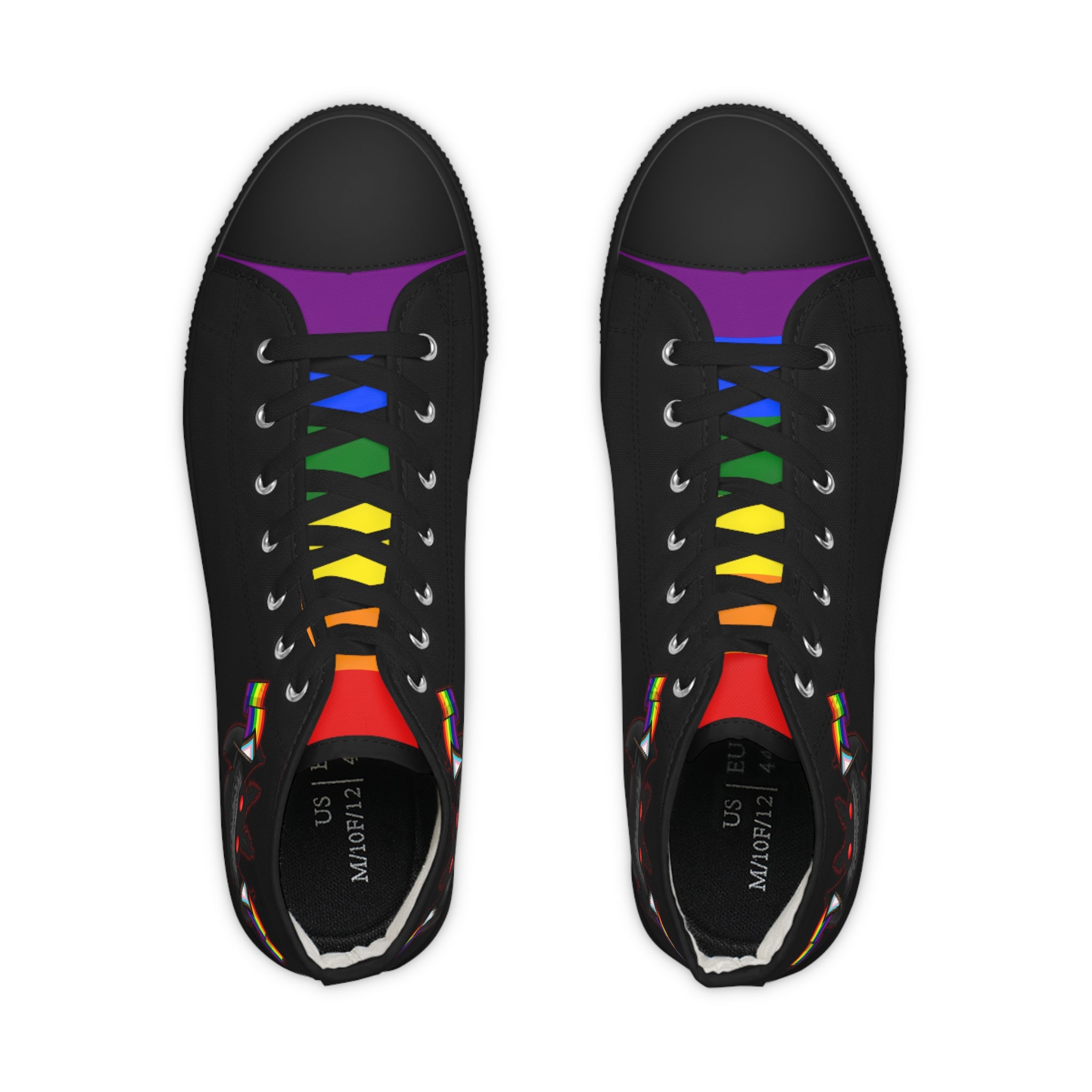 Introducing our stylish High Top Sneakers, designed to elevate your footwear game while offering ultimate comfort. These sneakers bring a fun, vibrant vibe to any outfit, making them perfect for casual outings, music festivals, or a day out with friends. With their unique design, they’re a great fit for anyone looking to express their individuality and love for colorful fashion. Ideal for the LGBTQ+ community, they can shine during Pride Month celebrations, birthday parties, or just as a statement piece in your wardrobe. Embrace your personality and step out in confidence with a pair that truly speaks to you.