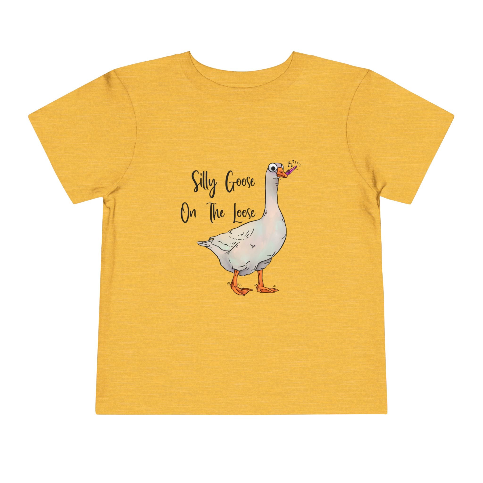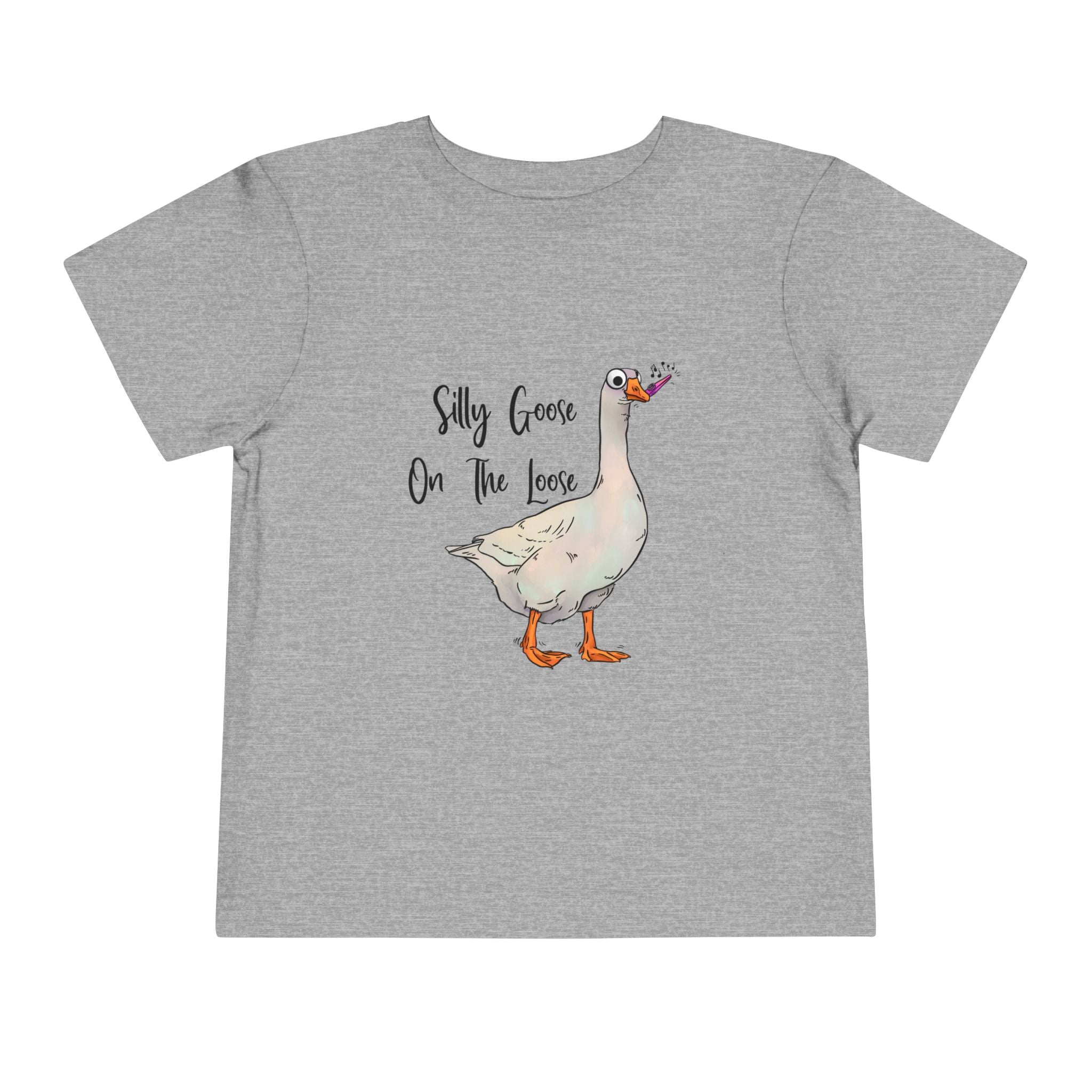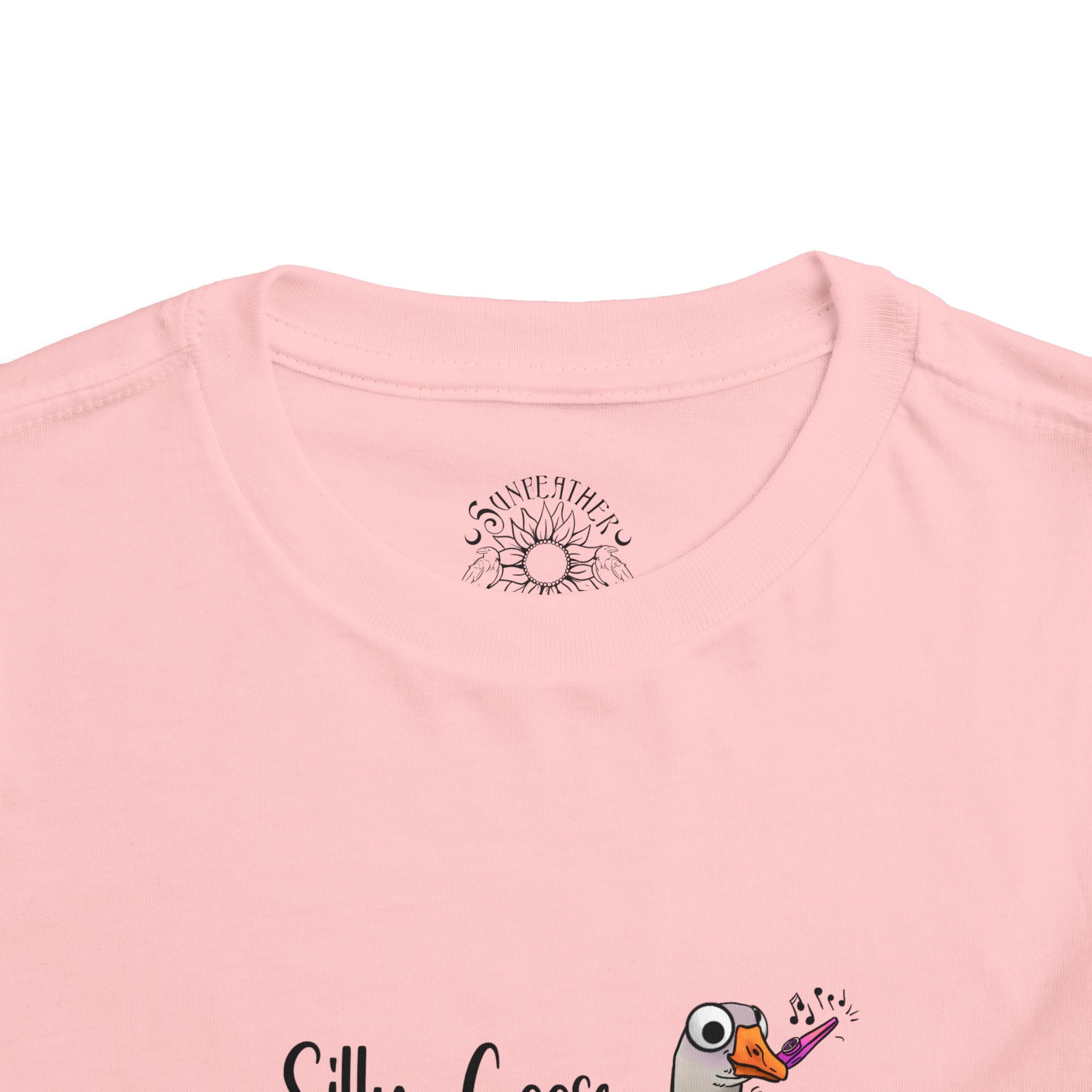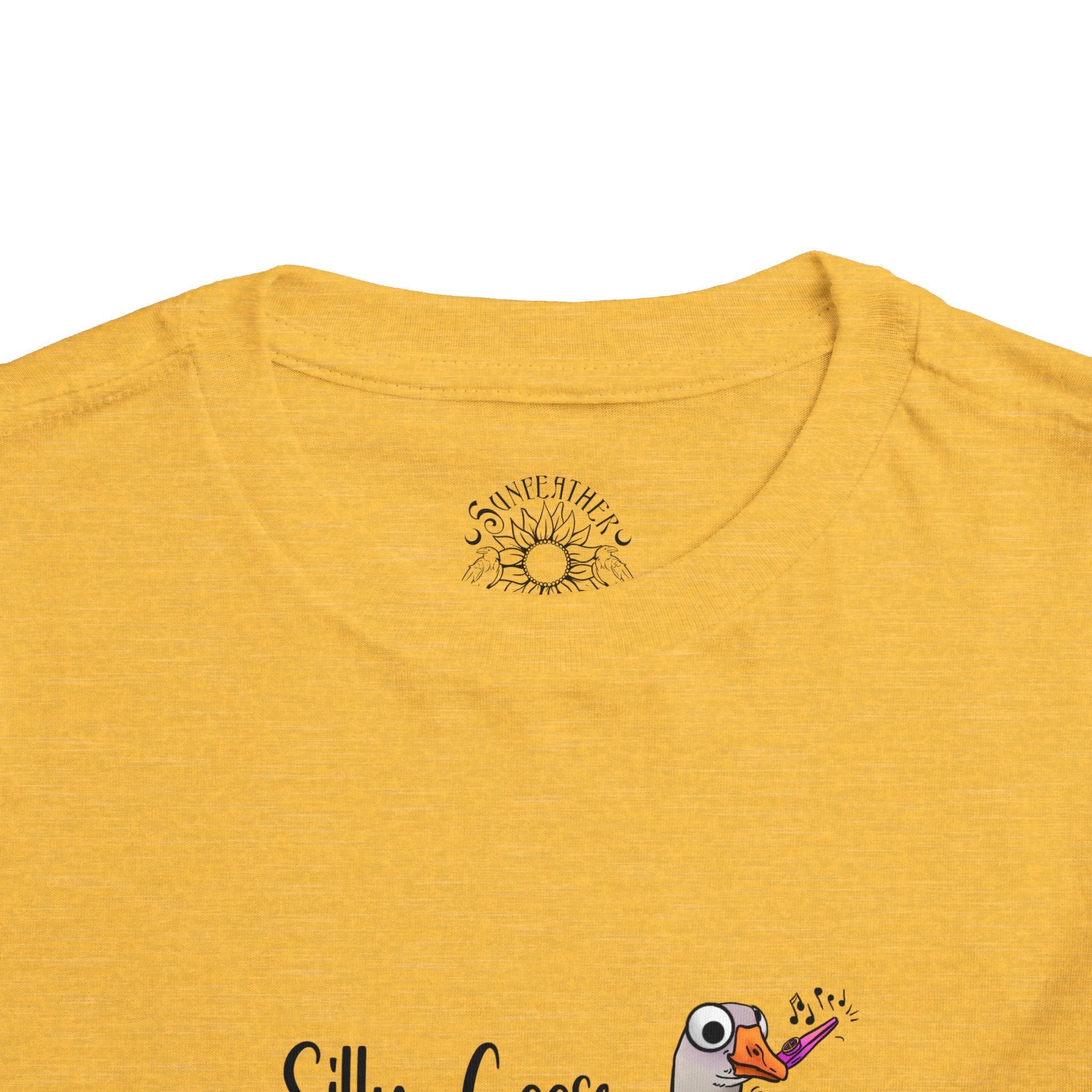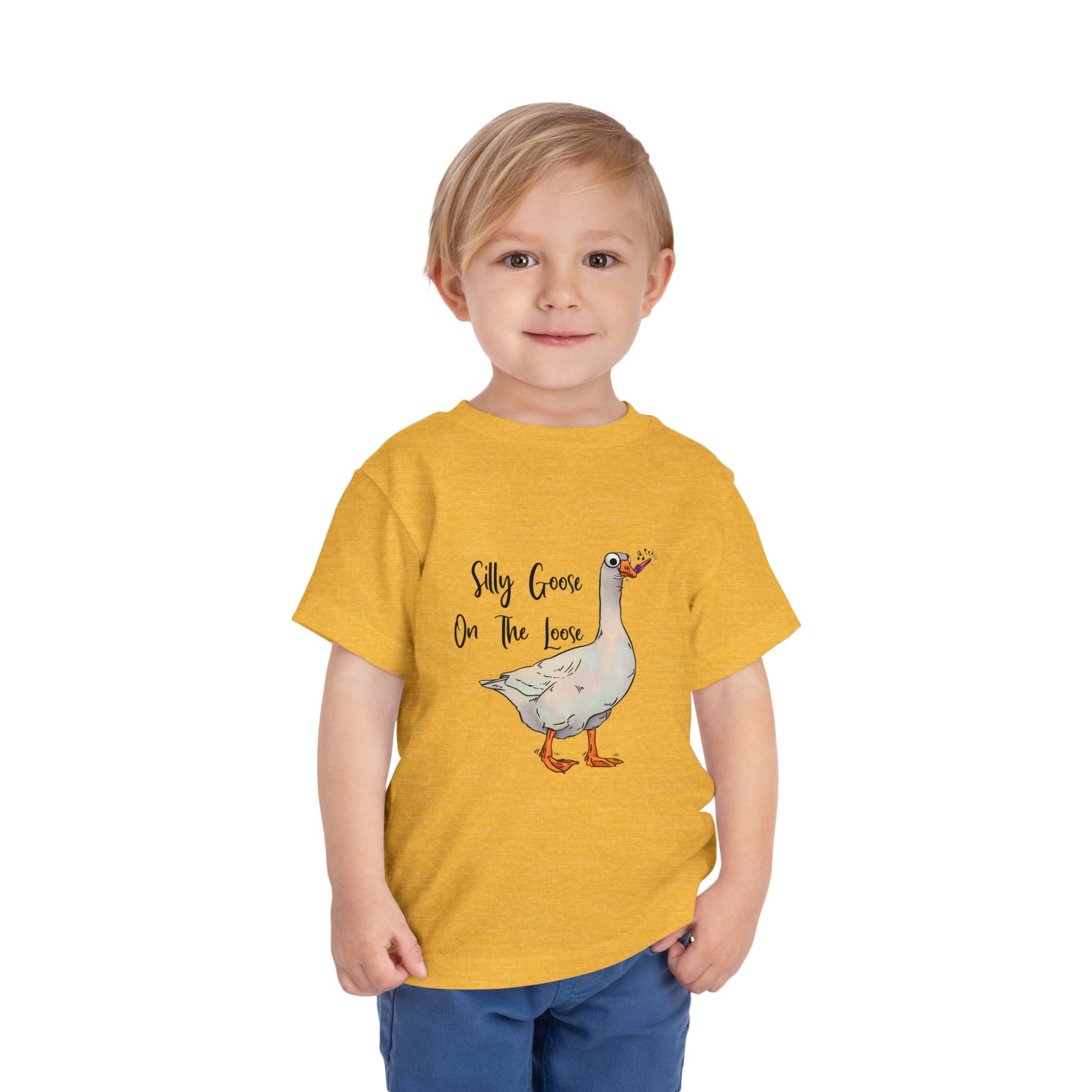 Let this playful toddler tee bring a little mischief and countryside charm to everyday wear. A hand-drawn goose, soft watercolor tones, and the cheeky line “Silly Goose On The Loose” sit gently on a lightweight white tee — easy for layering under a cardigan or pairing with play pants. The feel is airy and breathable so little explorers stay comfortable during rambles, storytime, and puddle-jumping. The simple back keeps the focus on the sweet illustration, while the tear-away label keeps naps and squabbles fuss-free. This shirt reads like a tiny storybook moment: a sunny morning, a curious gosling, and the kind of laughter that comes from small, unexpected adventures.