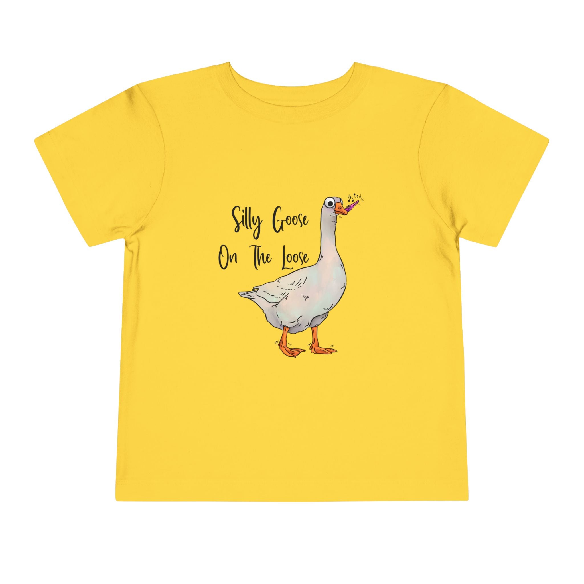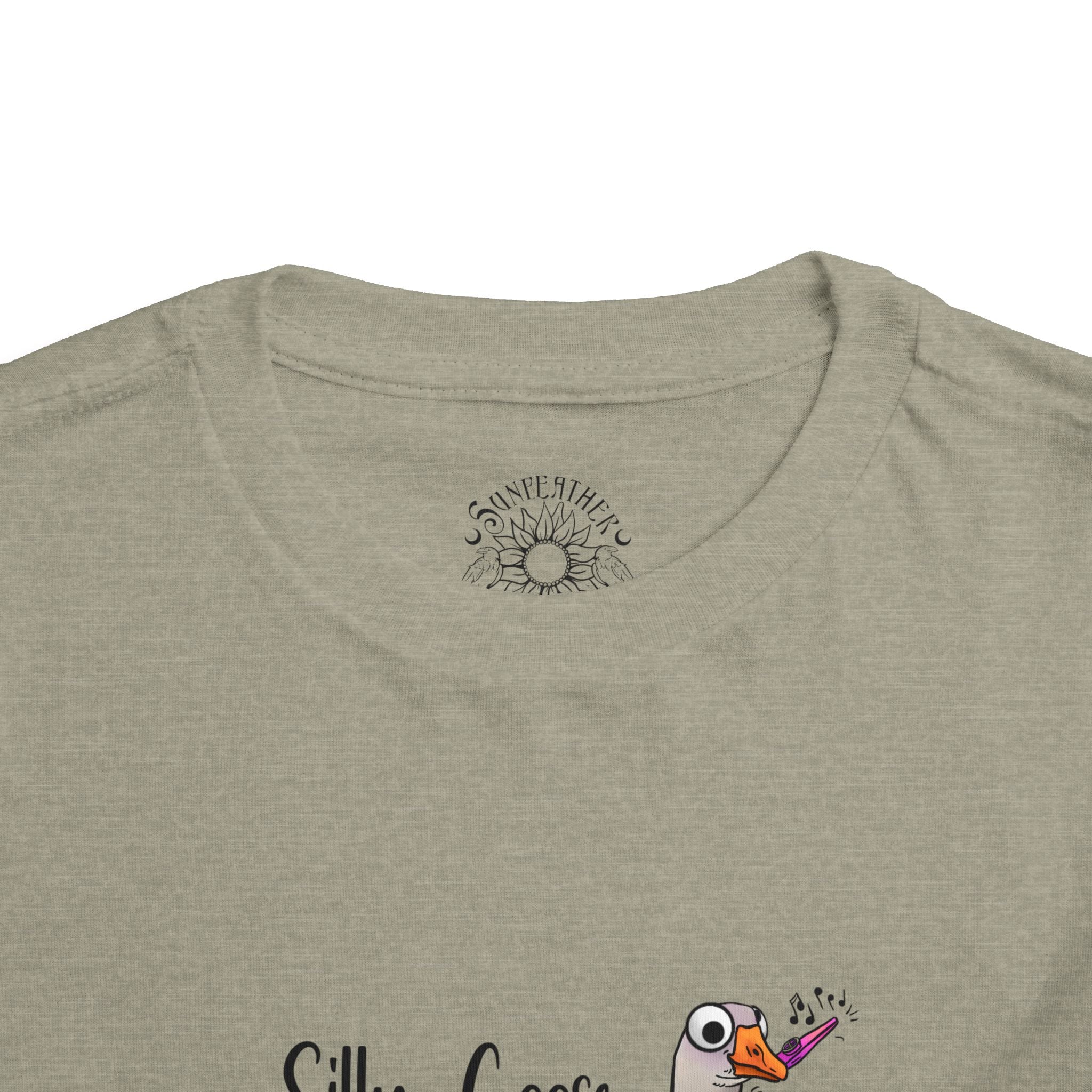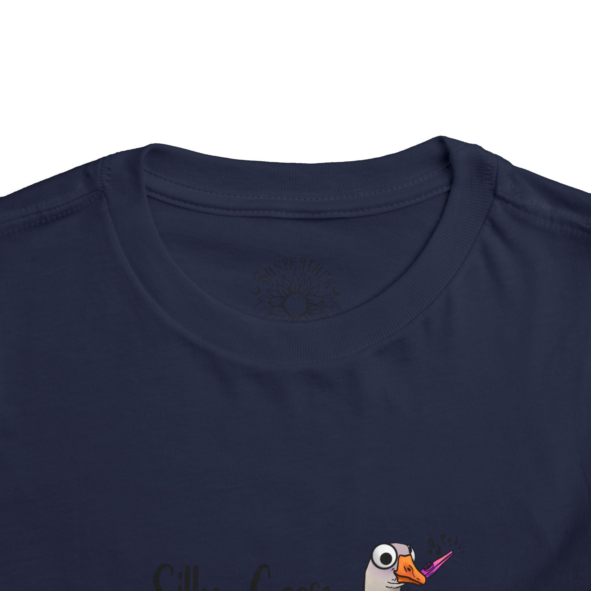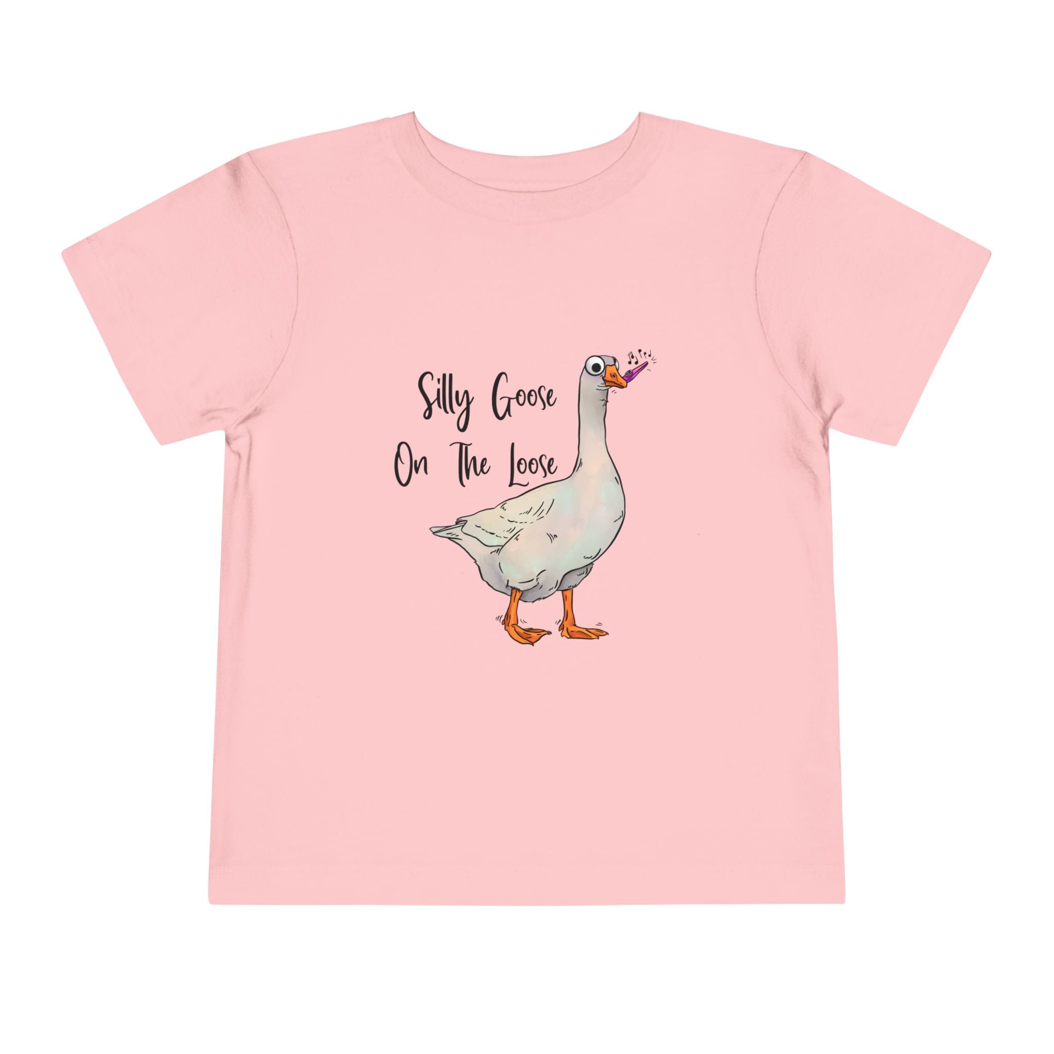 Let this playful toddler tee bring a little mischief and countryside charm to everyday wear. A hand-drawn goose, soft watercolor tones, and the cheeky line “Silly Goose On The Loose” sit gently on a lightweight white tee — easy for layering under a cardigan or pairing with play pants. The feel is airy and breathable so little explorers stay comfortable during rambles, storytime, and puddle-jumping. The simple back keeps the focus on the sweet illustration, while the tear-away label keeps naps and squabbles fuss-free. This shirt reads like a tiny storybook moment: a sunny morning, a curious gosling, and the kind of laughter that comes from small, unexpected adventures.