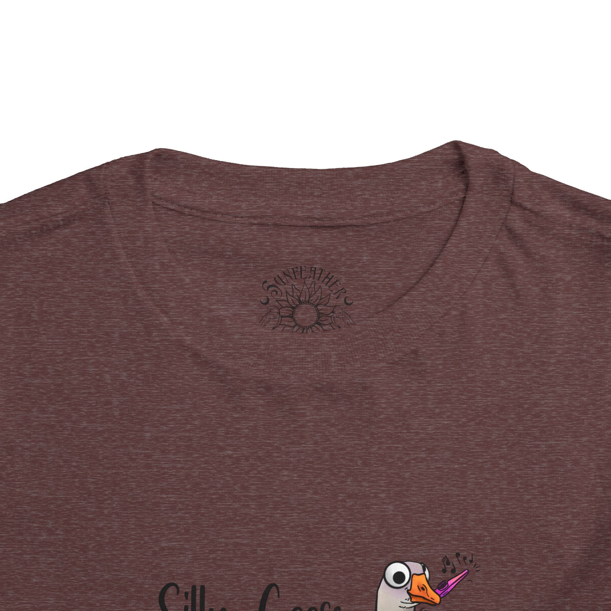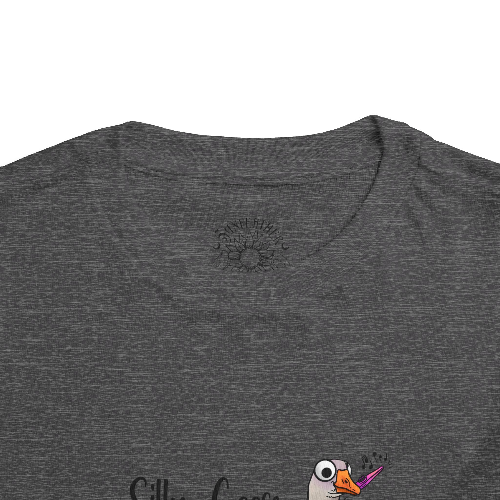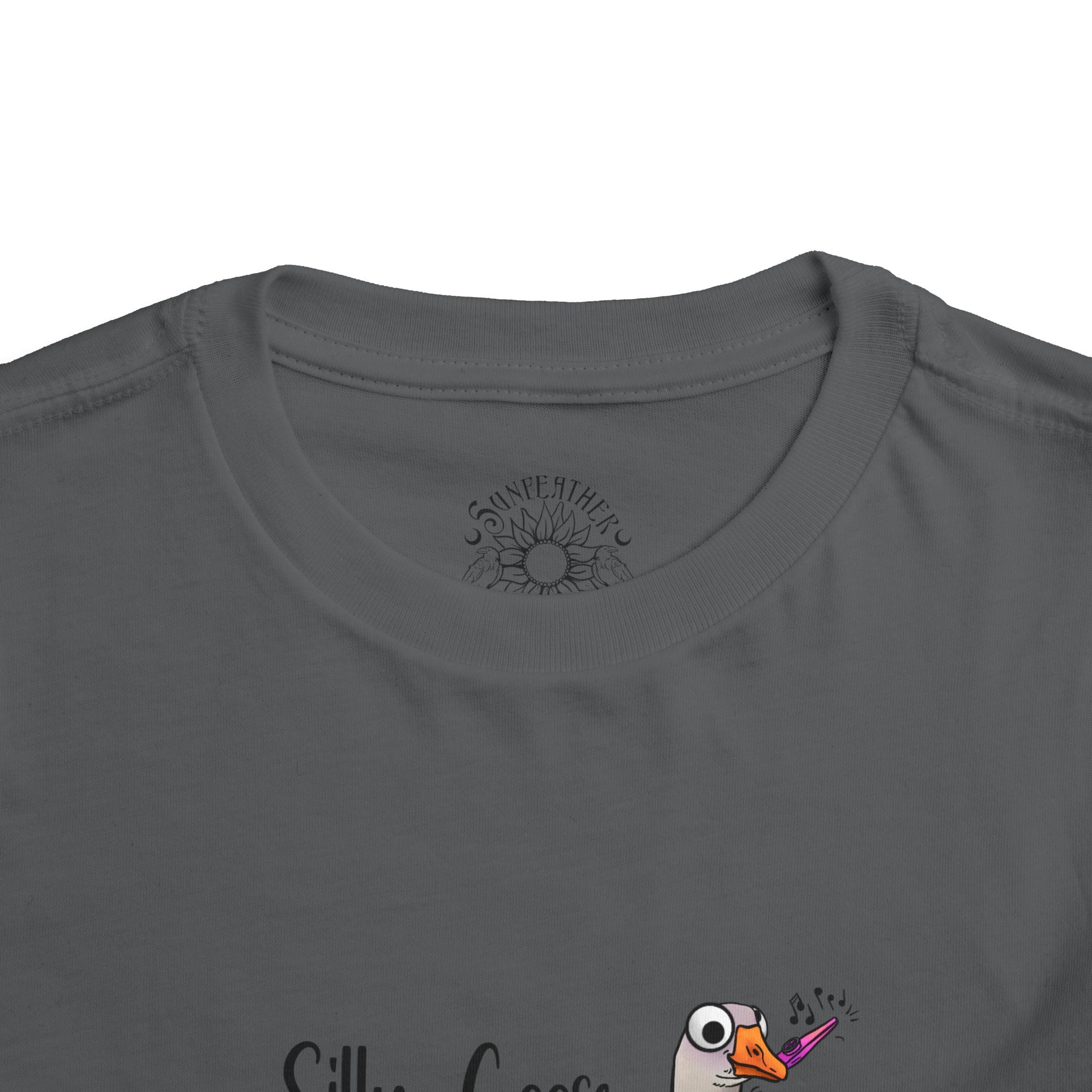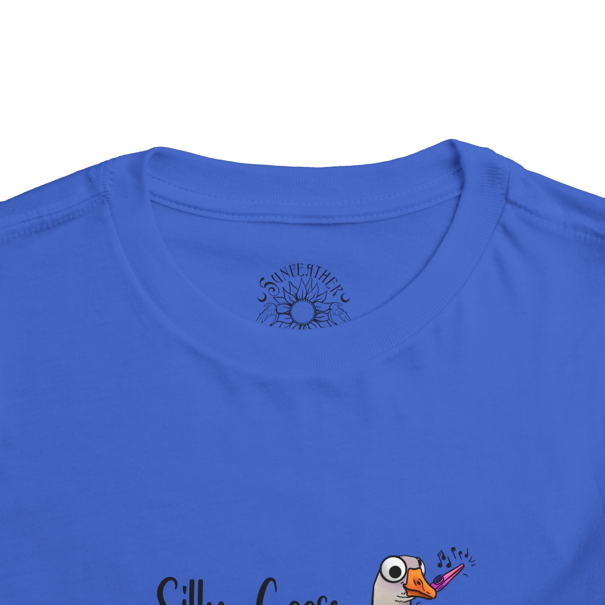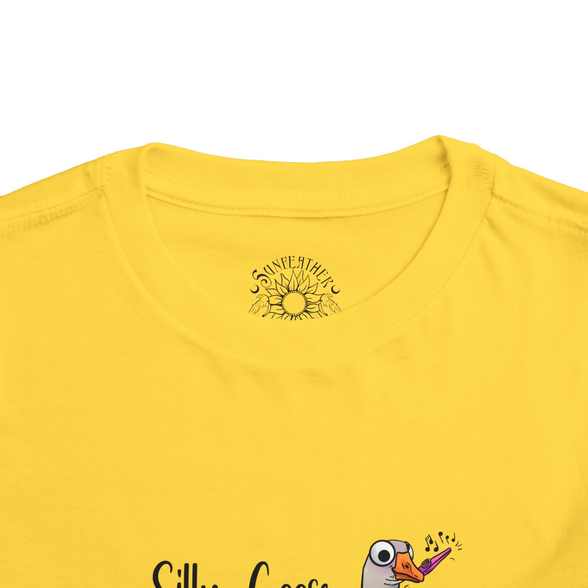 Let this playful toddler tee bring a little mischief and countryside charm to everyday wear. A hand-drawn goose, soft watercolor tones, and the cheeky line “Silly Goose On The Loose” sit gently on a lightweight white tee — easy for layering under a cardigan or pairing with play pants. The feel is airy and breathable so little explorers stay comfortable during rambles, storytime, and puddle-jumping. The simple back keeps the focus on the sweet illustration, while the tear-away label keeps naps and squabbles fuss-free. This shirt reads like a tiny storybook moment: a sunny morning, a curious gosling, and the kind of laughter that comes from small, unexpected adventures.
