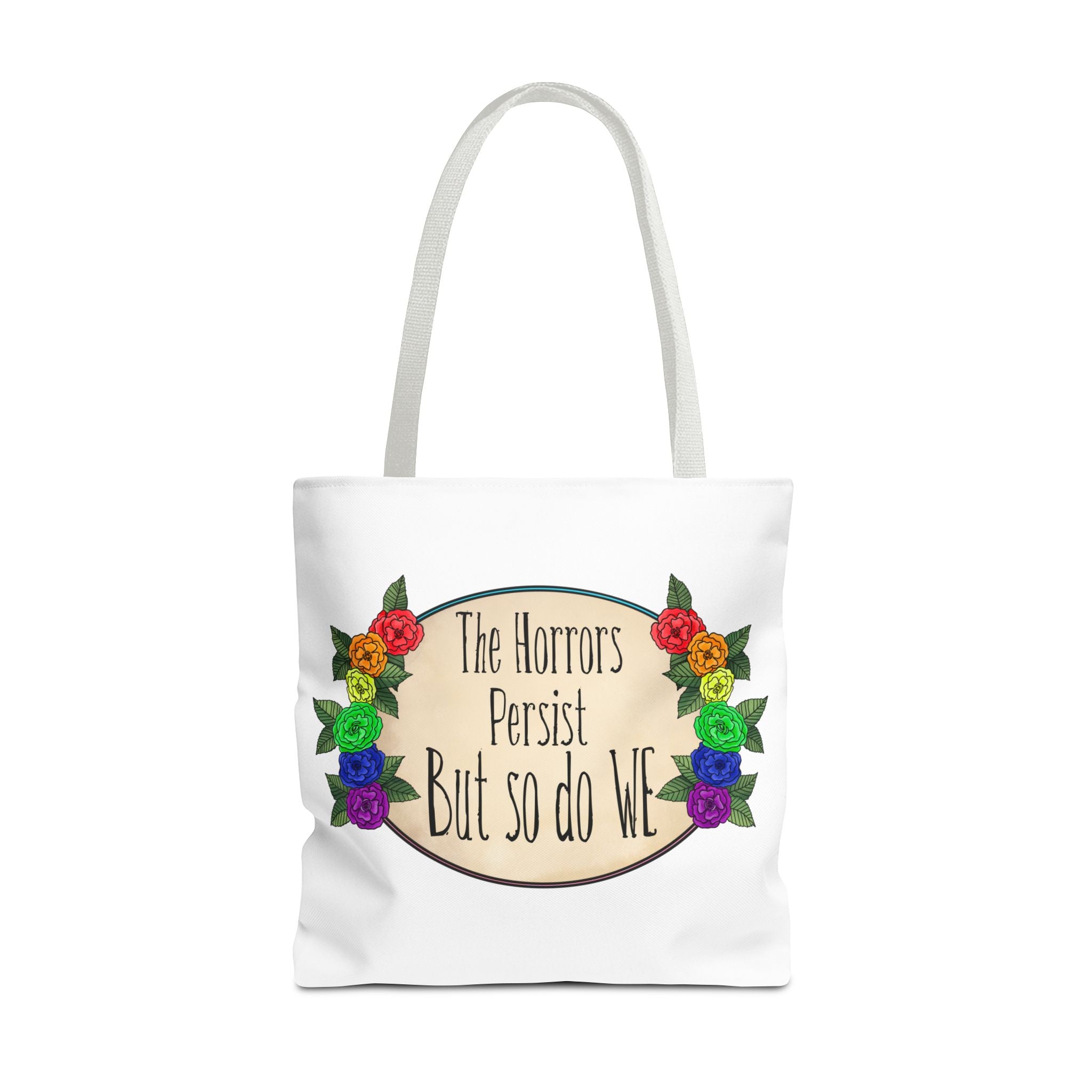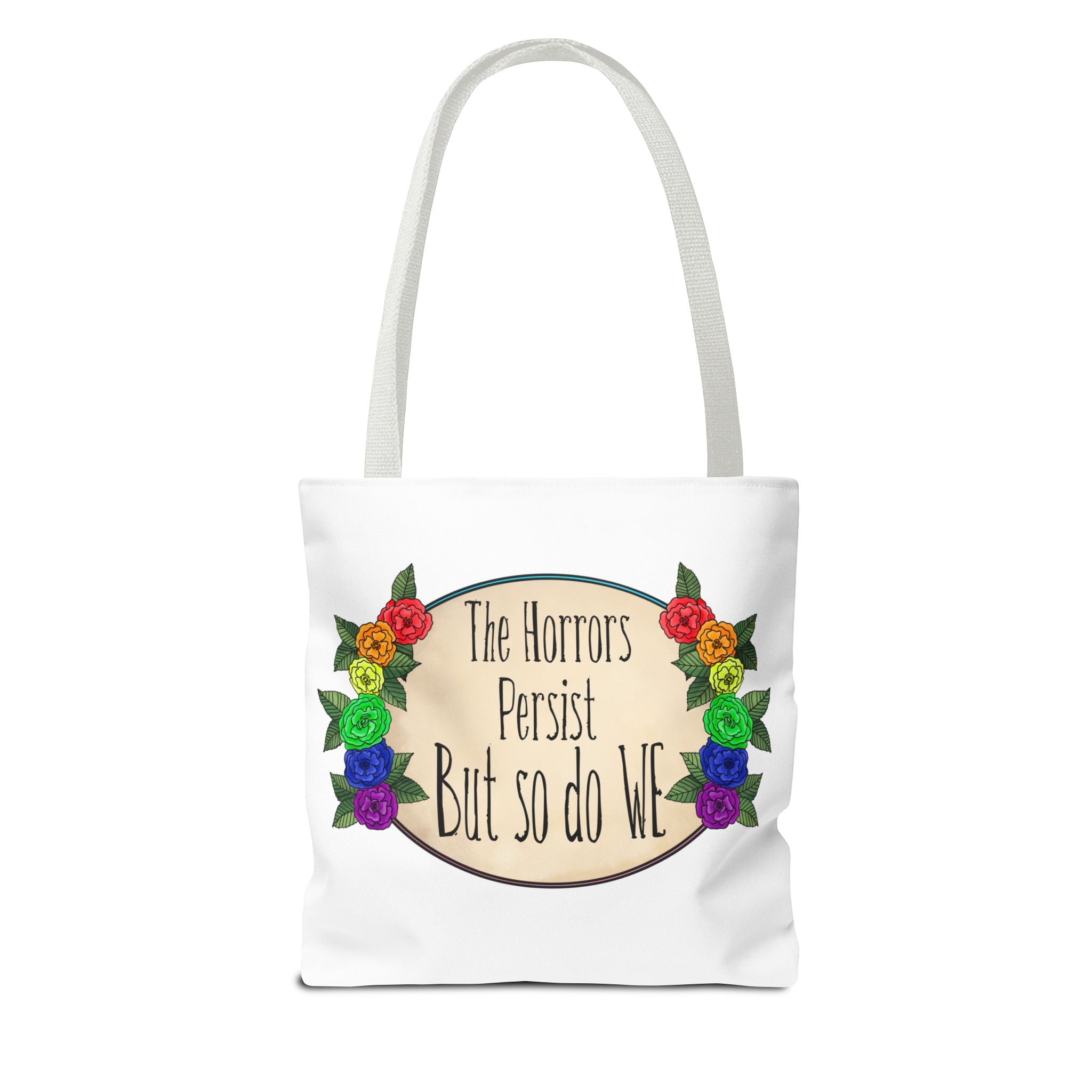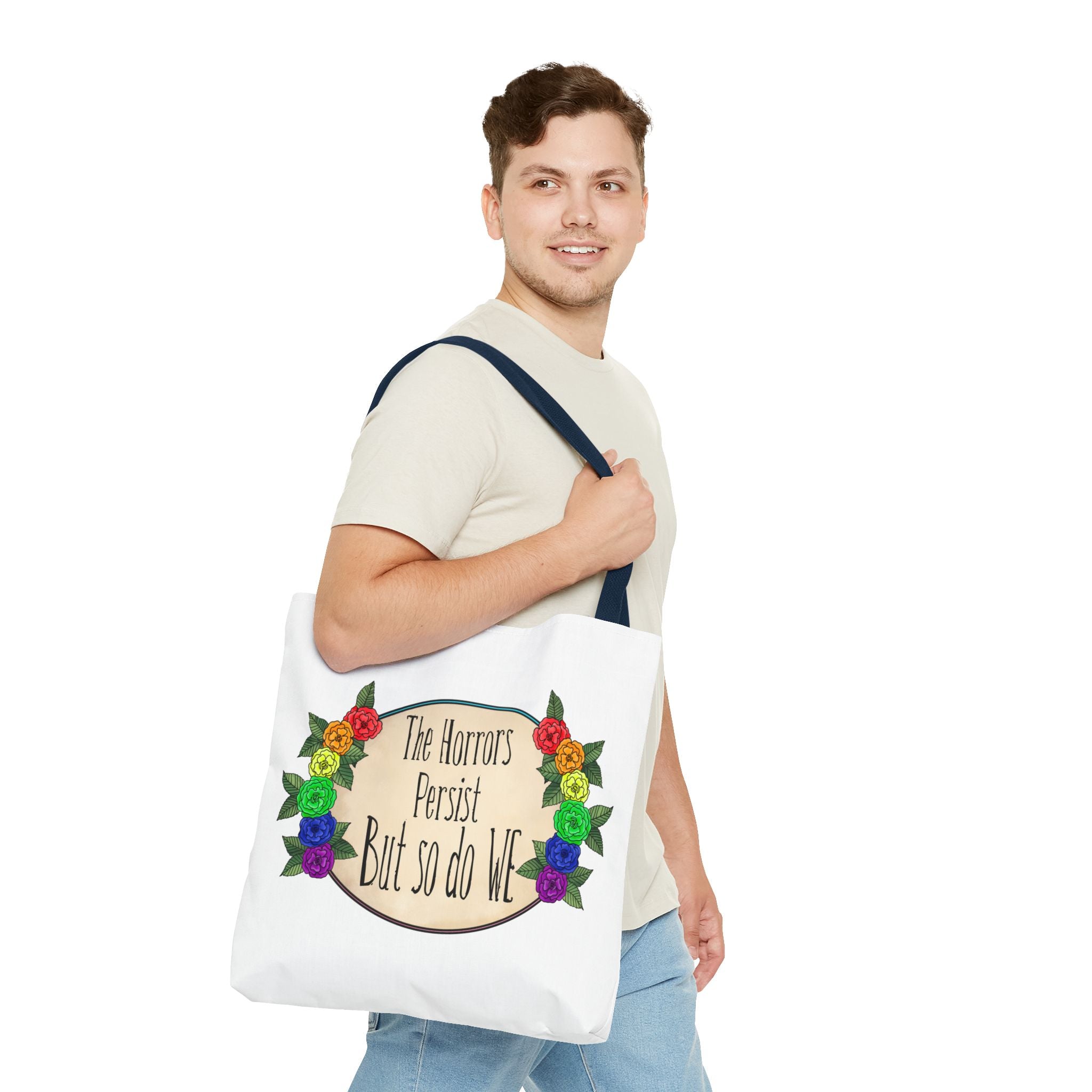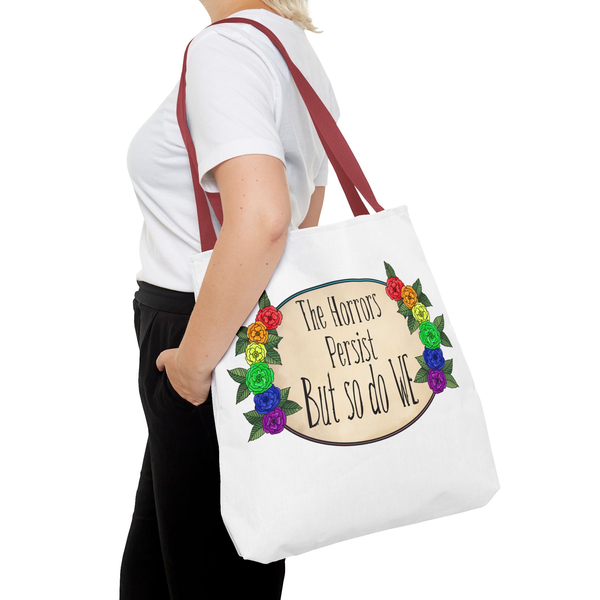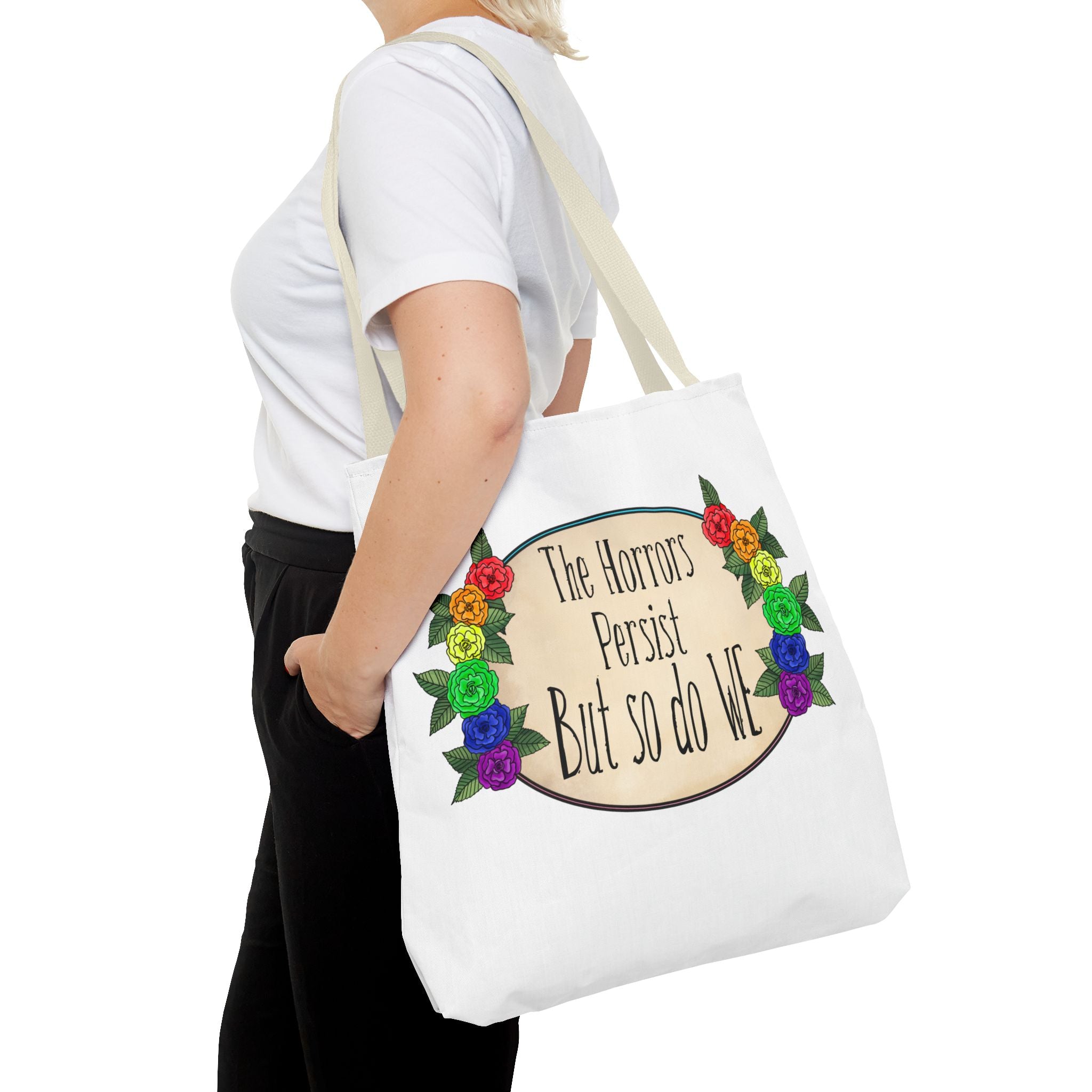 Introducing a beautifully crafted tote bag that seamlessly blends style and functionality. Made from durable polyester, this tote not only adds a pop of color to your outfit but also stands up to daily use. Its vibrant floral design carries a meaningful message, making it a perfect accessory for those who value resilience and positivity. Ideal for everyday errands, grocery shopping, or as a chic carry-all for work or school, this tote bag is relevant to anyone looking to express their individuality. Perfect for holidays, celebrations, or as a thoughtful gift for loved ones, it brings a touch of inspiration to any occasion. So whether you're headed to the beach, a picnic, or just out and about, this tote bag will keep your essentials stylishly organized.