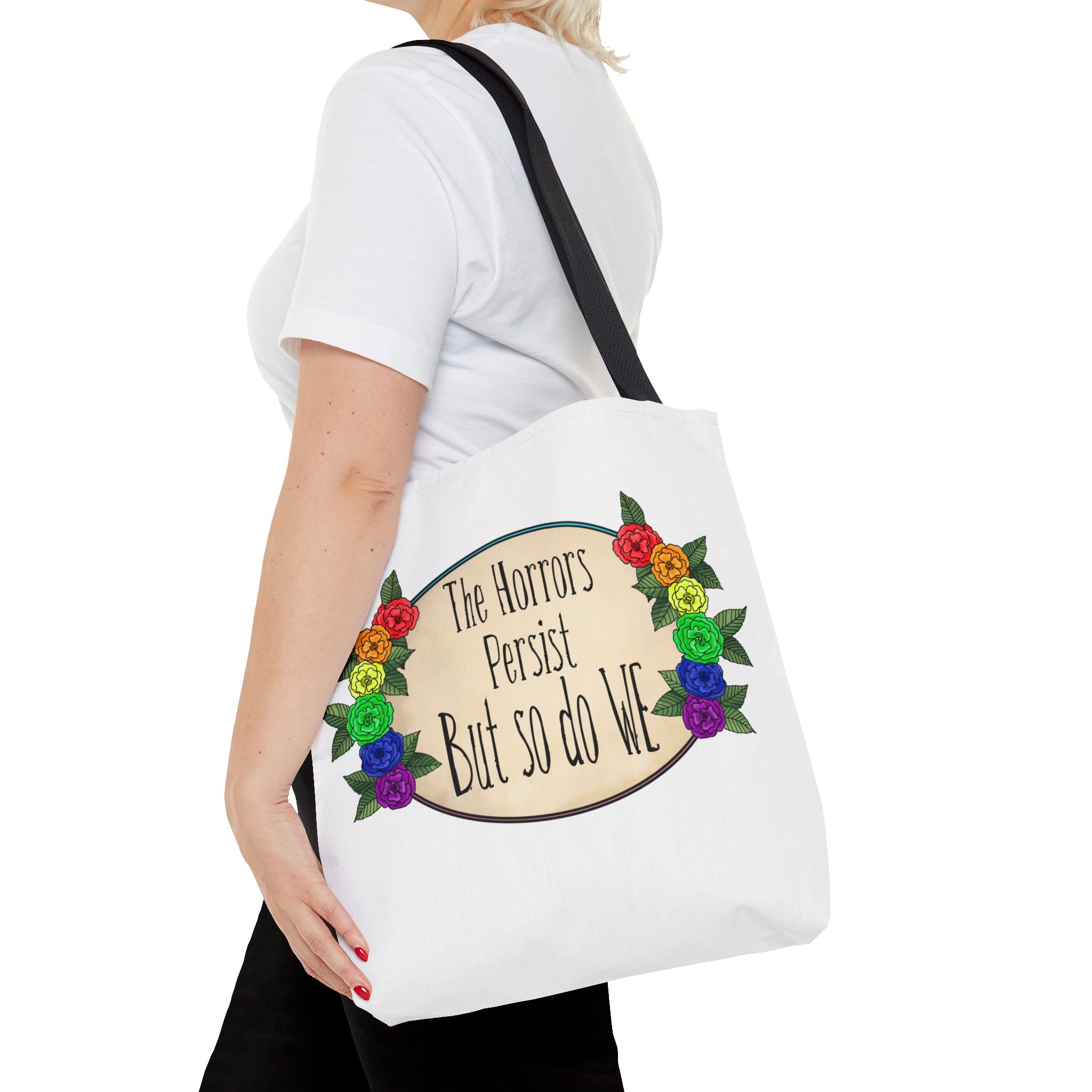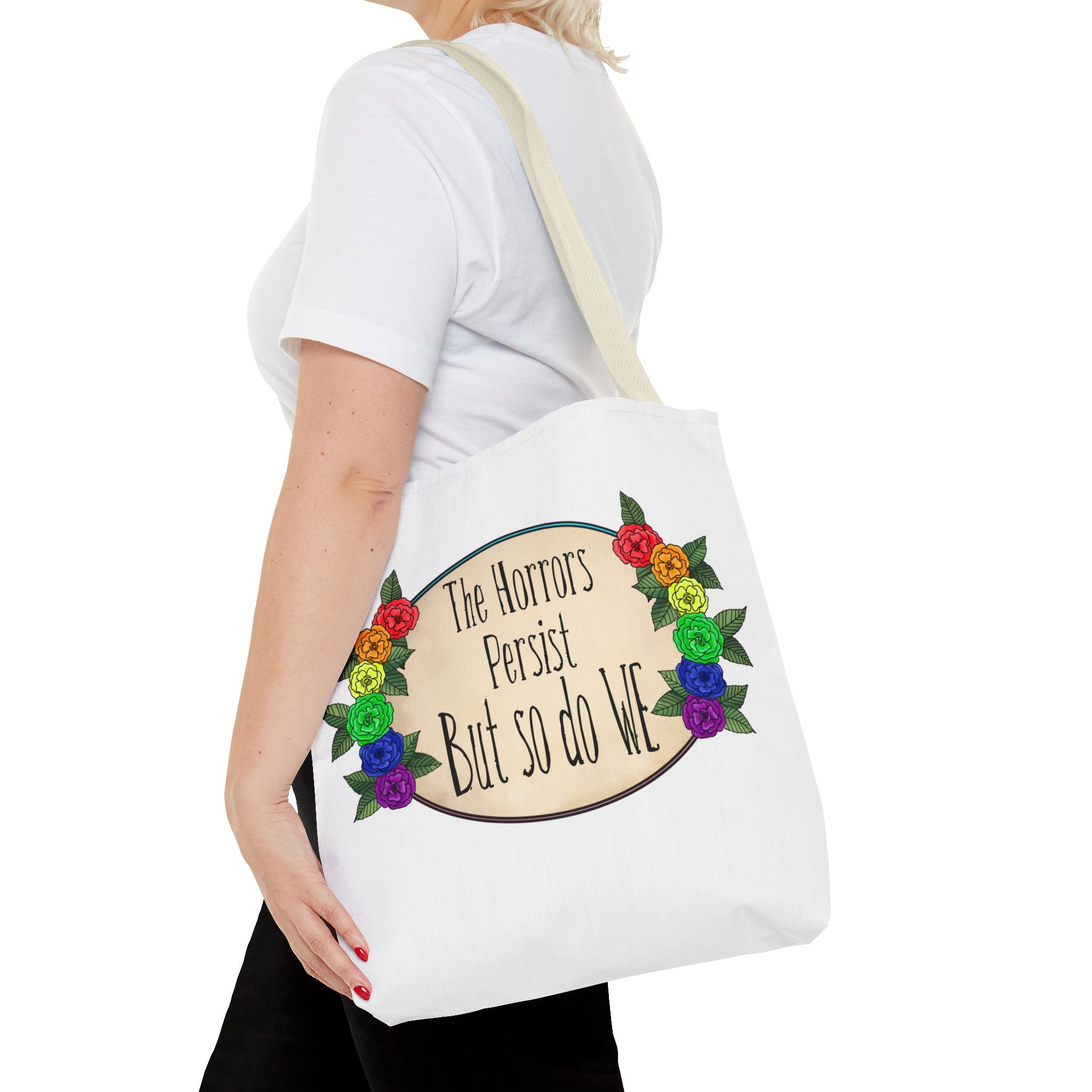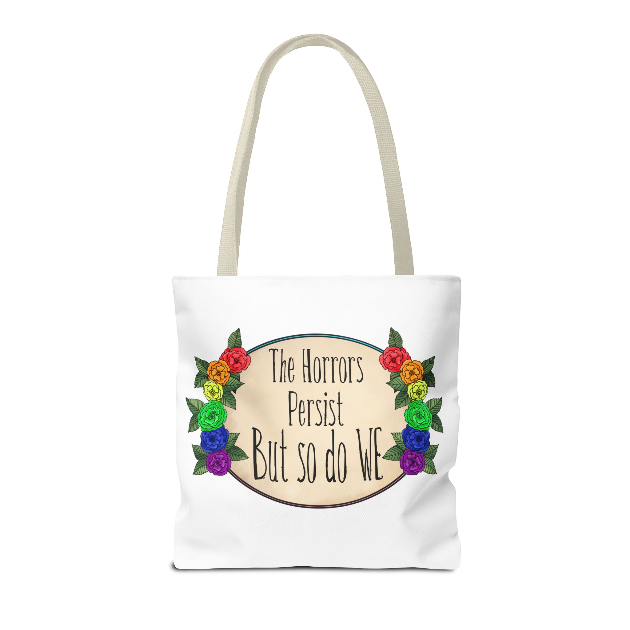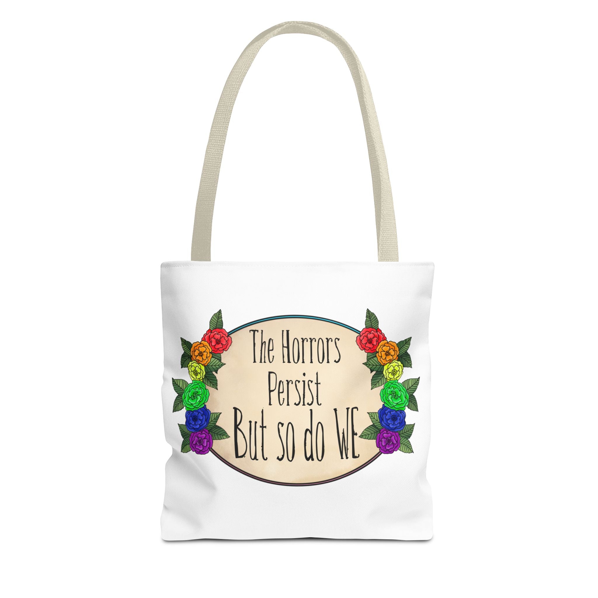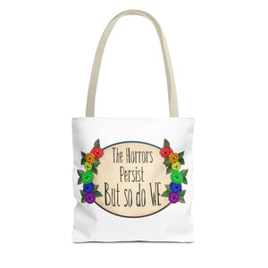Introducing a beautifully crafted tote bag that seamlessly blends style and functionality. Made from durable polyester, this tote not only adds a pop of color to your outfit but also stands up to daily use. Its vibrant floral design carries a meaningful message, making it a perfect accessory for those who value resilience and positivity. Ideal for everyday errands, grocery shopping, or as a chic carry-all for work or school, this tote bag is relevant to anyone looking to express their individuality. Perfect for holidays, celebrations, or as a thoughtful gift for loved ones, it brings a touch of inspiration to any occasion. So whether you're headed to the beach, a picnic, or just out and about, this tote bag will keep your essentials stylishly organized.
